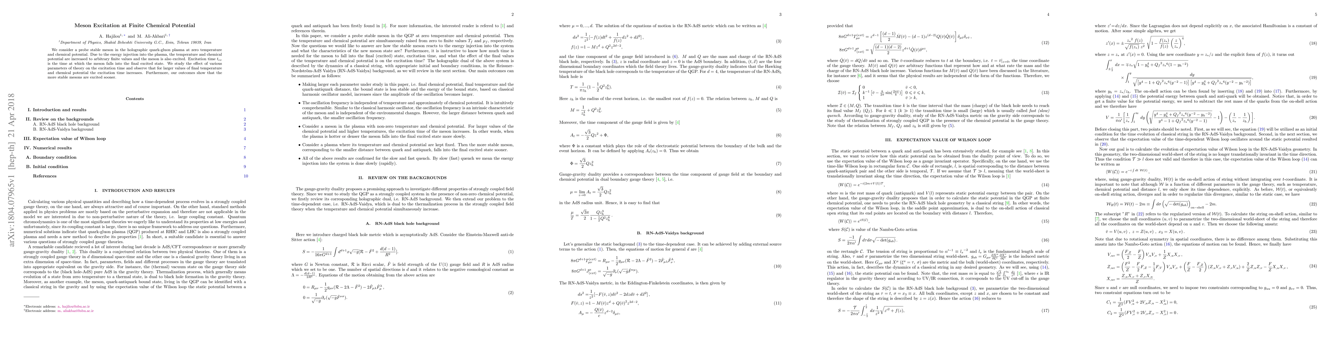This paper investigates the excitation of stable mesons in a holographic quark-gluon plasma at finite temperature and chemical potential, finding that the excitation time increases with higher final temperature and chemical potential, while more stable mesons tend to excite earlier.