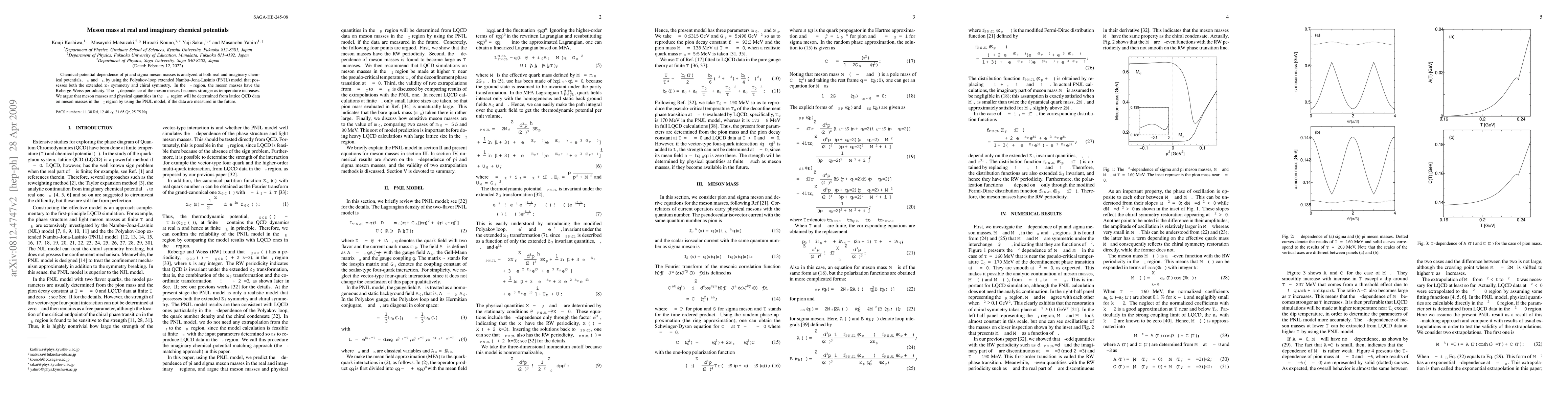 The chemical-potential dependence of pi and sigma meson masses is analyzed at both real and imaginary chemical potentials, $\mu_\mathrm{R}$ and $\mu_\mathrm{I}$, by using the Polyakov-loop extended Nambu--Jona-Lasinio (PNJL) model that possesses both the extended ${\mathbb Z}_3$ symmetry and the chiral symmetry. In the $\mu_\mathrm{I}$ region, the meson masses have the Roberge-Weiss periodicity. Assuming that the meson masses will be measured at finite $\mu_\mathrm{I}$ by lattice QCD in future, we simulate how meson masses at finite $\mu_\mathrm{R}$ are extracted from those at finite $\mu_\mathrm{I}$, and propose a reliable extraction method.