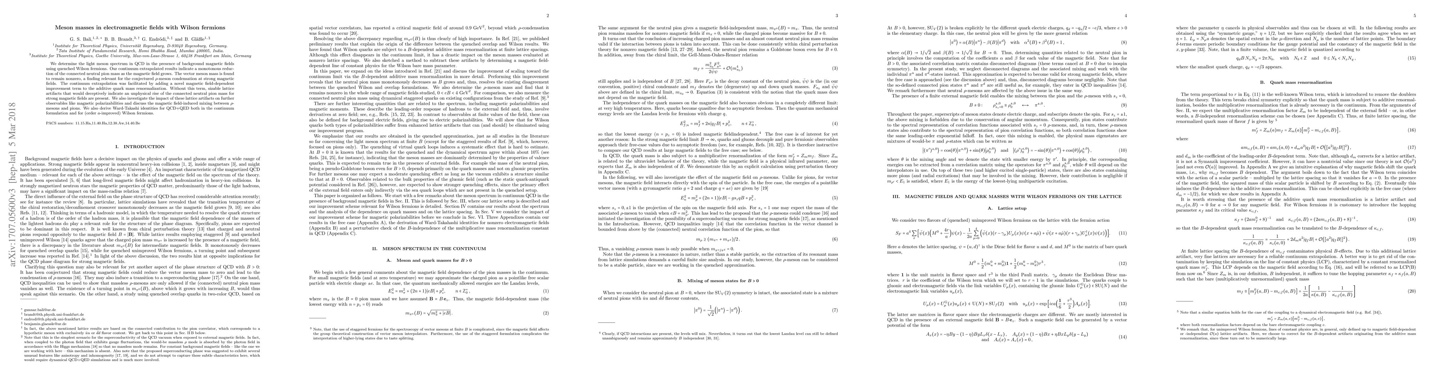 This study examines the meson mass spectrum in QCD with background magnetic fields using quenched Wilson fermions, revealing a decrease in the neutral pion mass with increasing magnetic fields and maintaining nonzero vector meson mass. The research highlights the importance of a magnetic field-dependent improvement term to avoid misleading lattice artifacts.
