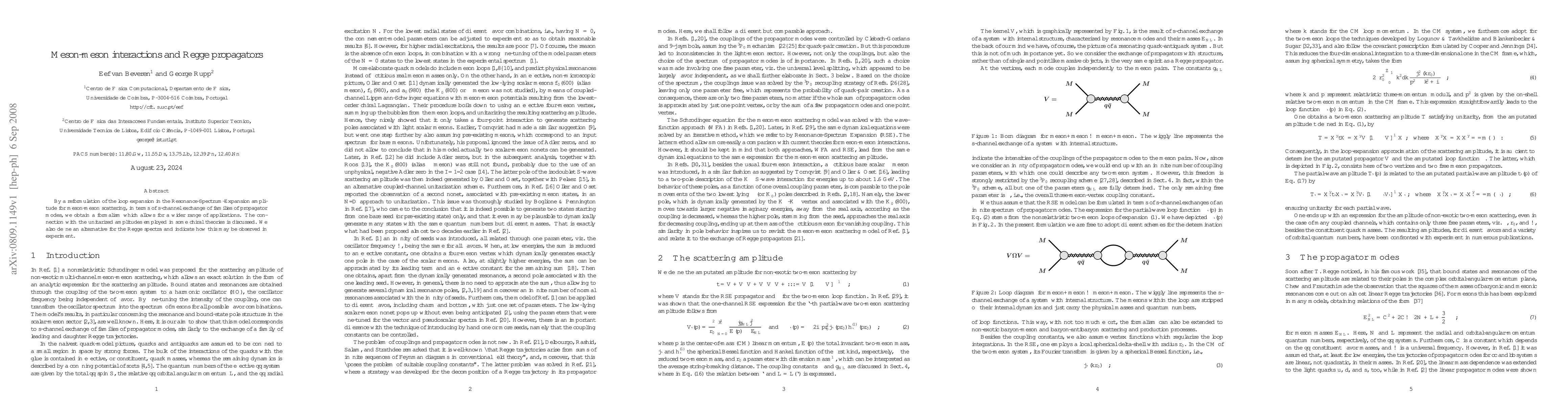 By a reformulation of the loop expansion in the Resonance-Spectrum-Expansion amplitude for meson-meson scattering, in terms of s-channel exchange of families of propagator modes, we obtain a formalism which allows for a wider range of applications. The connection with the unitarized amplitudes employed in some chiral theories is discussed. We also define an alternative for the Regge spectra and indicate how this may be observed in experiment.