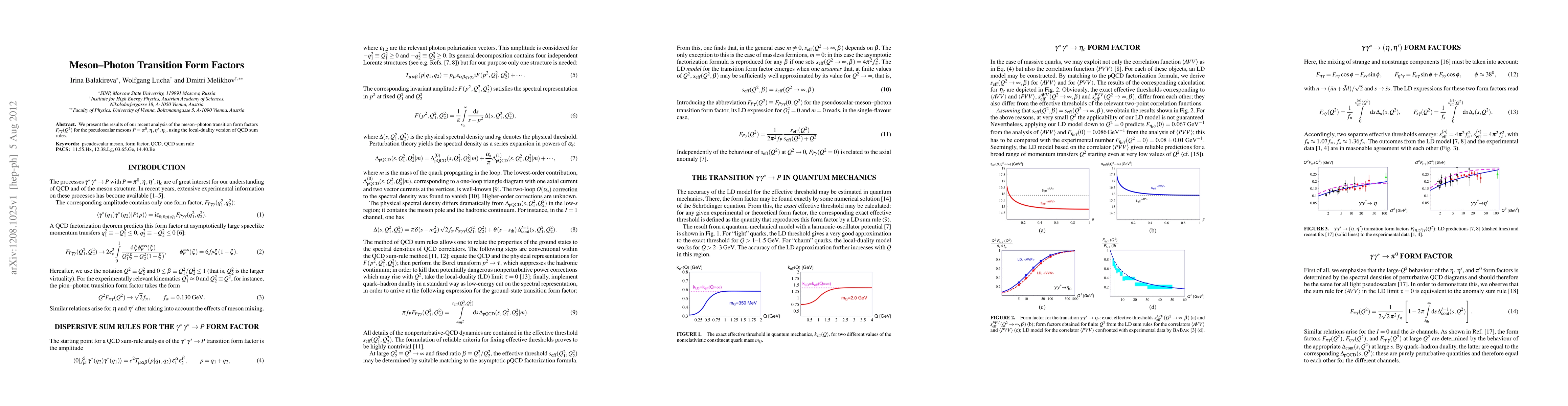 We present the results of our recent analysis of the meson-photon transition form factors $F_{P\gamma}(Q^2)$ for the pseudoscalar mesons $P = \pi^0,\eta,\eta',\eta_c$, using the local-duality version of QCD sum rules.