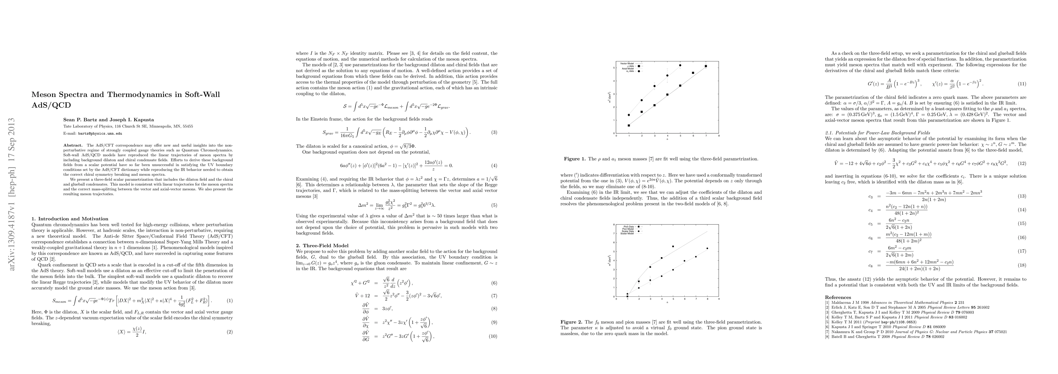 The AdS/CFT correspondence may offer new and useful insights into the non- perturbative regime of strongly coupled gauge theories such as Quantum Chromodynamics. Soft-wall AdS/QCD models have reproduced the linear trajectories of meson spectra by including background dilaton and chiral condensate fields. Efforts to derive these background fields from a scalar potential have so far been unsuccessful in satisfying the UV boundary conditions set by the AdS/CFT dictionary while reproducing the IR behavior needed to obtain the correct chiral symmetry breaking and meson spectra. We present a three-field scalar parametrization that includes the dilaton field and the chiral and glueball condensates. This model is consistent with linear trajectories for the meson spectra and the correct mass-splitting between the vector and axial-vector mesons. We also present the resulting meson trajectories.
