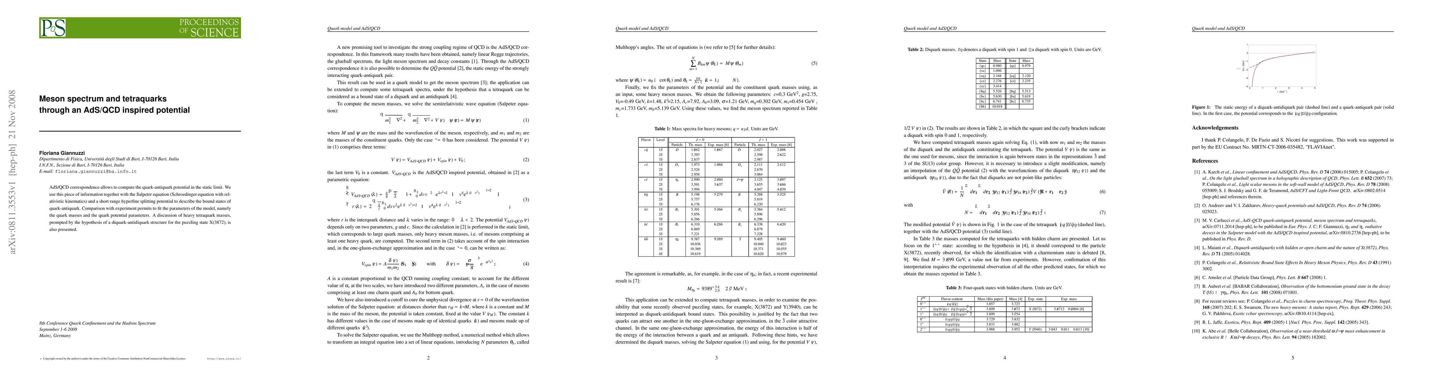 This paper employs AdS/QCD correspondence to compute the quark-antiquark potential and uses the Salpeter equation to model meson spectra and tetraquarks. The model parameters are fitted against experimental data, and the study discusses the potential tetraquark structure of the X(3872) state.