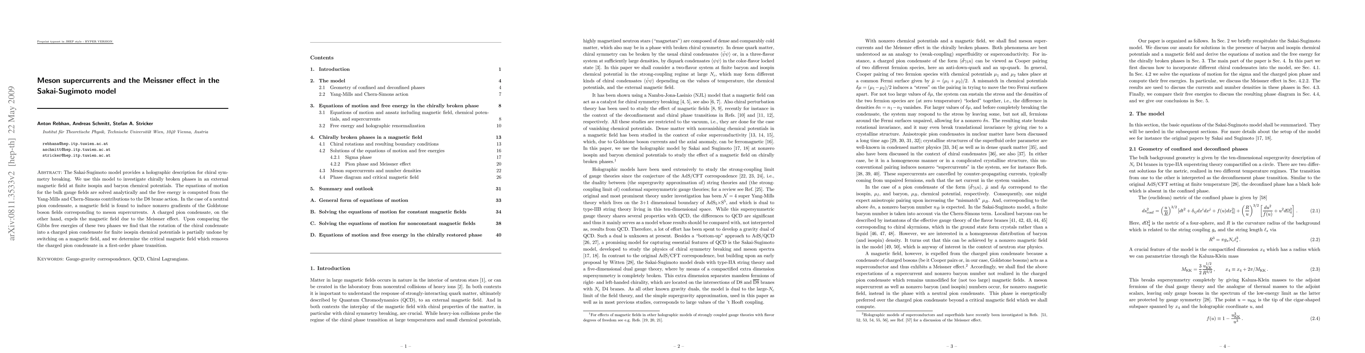 The Sakai-Sugimoto model is used to study chiral symmetry breaking in an external magnetic field, revealing meson supercurrents in neutral pion condensates and the Meissner effect in charged pion condensates. The critical magnetic field for the transition from charged to neutral pion condensates is identified.