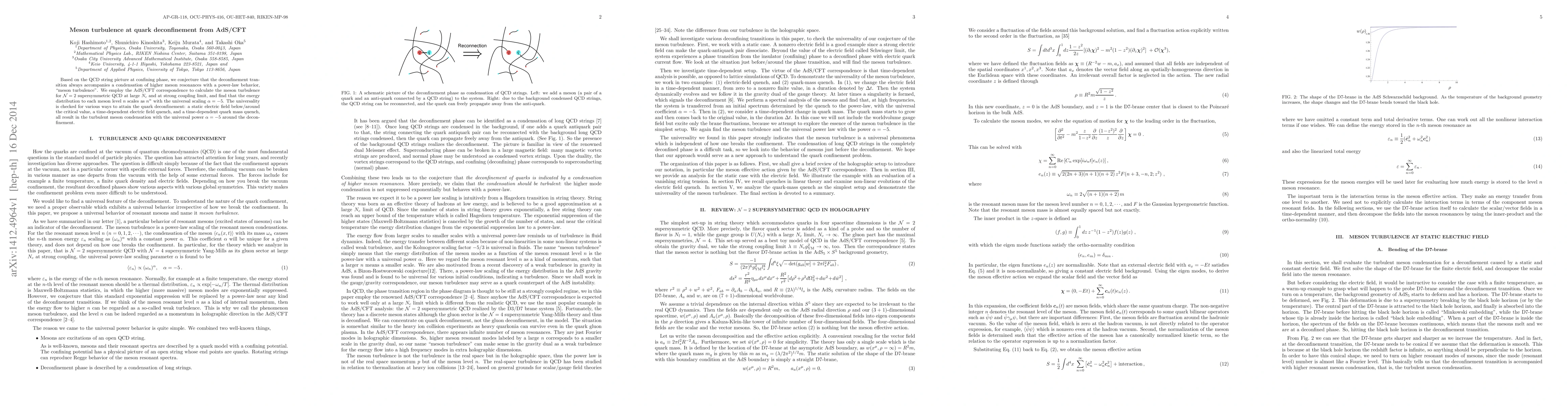 This paper proposes that quark deconfinement is accompanied by "meson turbulence," characterized by a power-law condensation of higher meson resonances, with a universal scaling exponent of -5. Using AdS/CFT correspondence for $\mathcal{N}=2$ supersymmetric QCD, the study confirms this universality across different deconfinement methods.