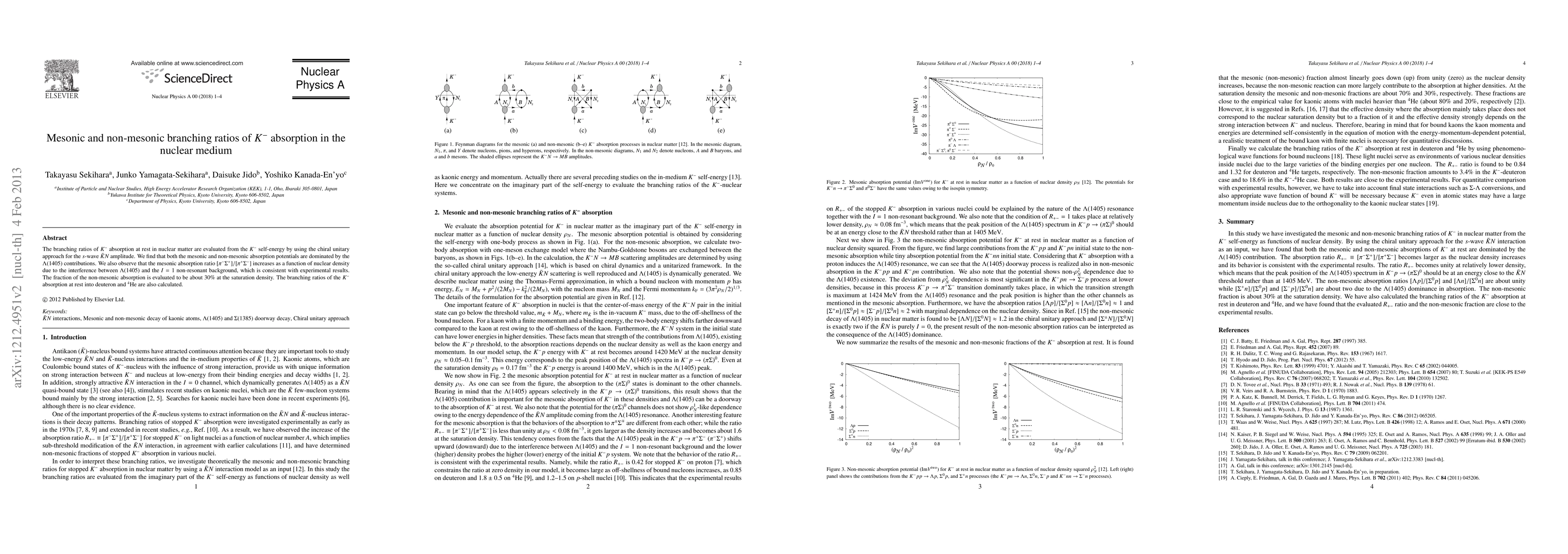 This paper evaluates the branching ratios of K^- absorption in nuclear matter using the chiral unitary approach, finding that both mesonic and non-mesonic processes are significantly influenced by the \Lambda(1405) contributions. The study also shows that the mesonic absorption ratio increases with nuclear density due to interference effects, aligning with experimental observations.
