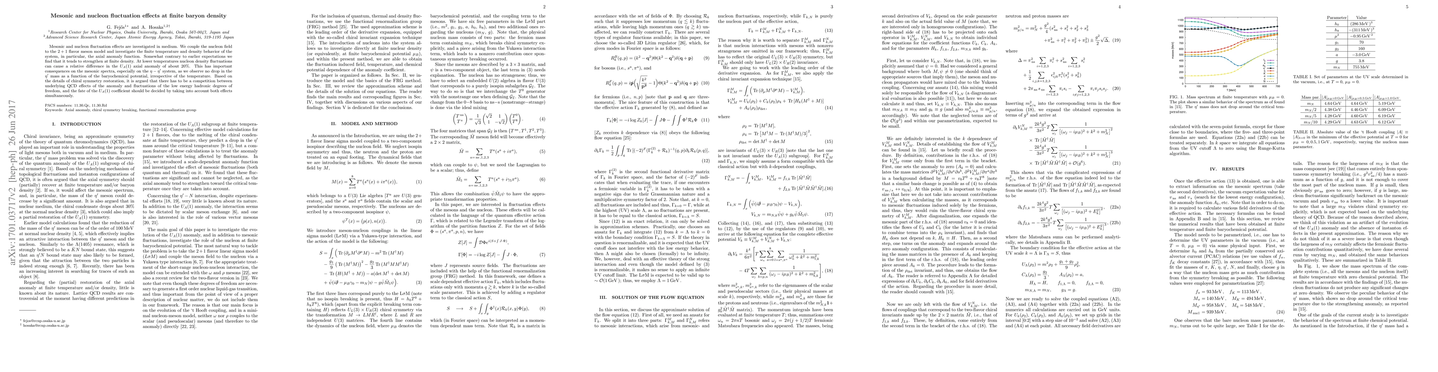 This paper investigates mesonic and nucleon fluctuations in medium at finite baryon density, revealing that the axial anomaly function strengthens rather than weakens. The findings suggest a 20% relative difference in the $U_A(1)$ axial anomaly due to nucleon density fluctuations, impacting the $\eta-\eta'$ mesonic spectra without a drop in $\eta'$ mass.