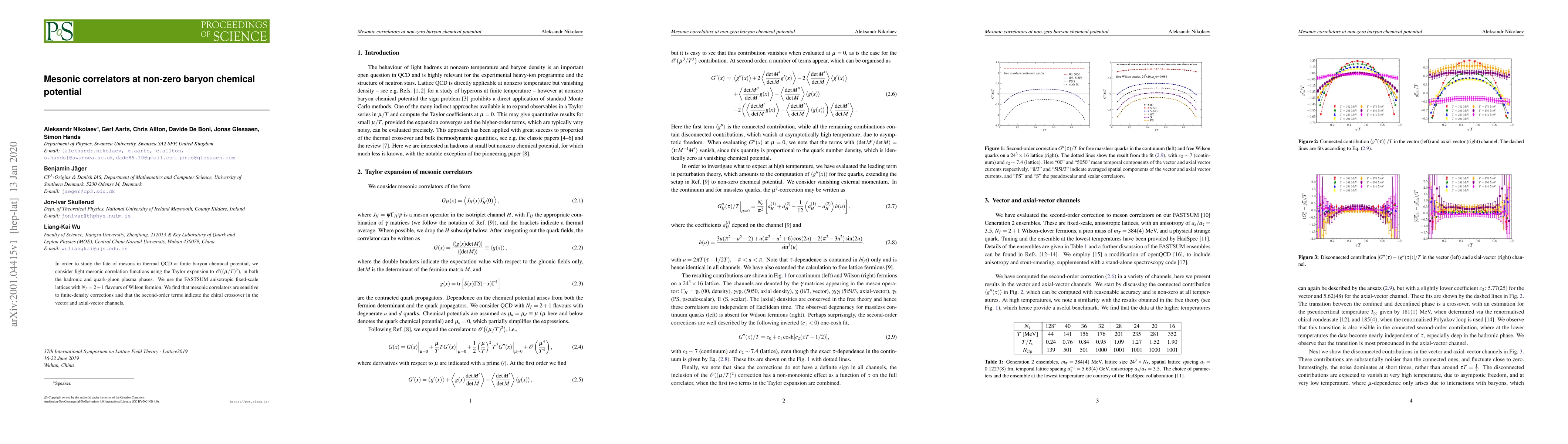 In order to study the fate of mesons in thermal QCD at finite baryon chemical potential, we consider light mesonic correlation functions using the Taylor expansion to ${\cal O}((\mu/T)^2)$, in both the hadronic and quark-gluon plasma phases. We use the FASTSUM anisotropic fixed-scale lattices with $N_f = 2+1$ flavours of Wilson fermion. We find that mesonic correlators are sensitive to finite-density corrections and that the second-order terms indicate the chiral crossover in the vector and axial-vector channels.