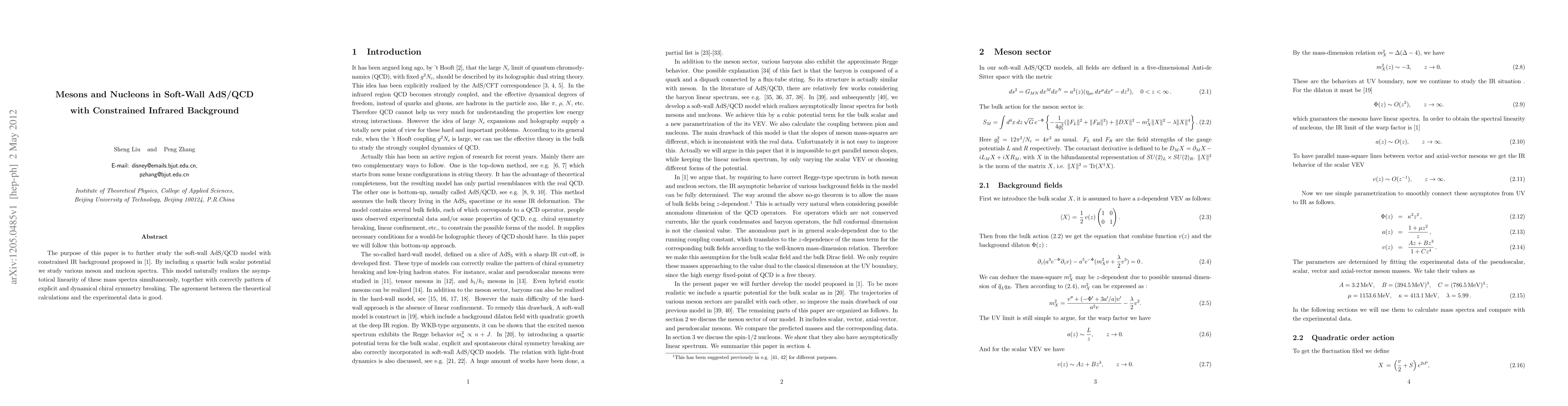 This paper investigates the soft-wall AdS/QCD model with a constrained infrared background, incorporating a quartic bulk scalar potential to study meson and nucleon spectra. The model achieves good agreement with experimental data while realizing the asymptotic linearity of mass spectra and the correct pattern of chiral symmetry breaking.