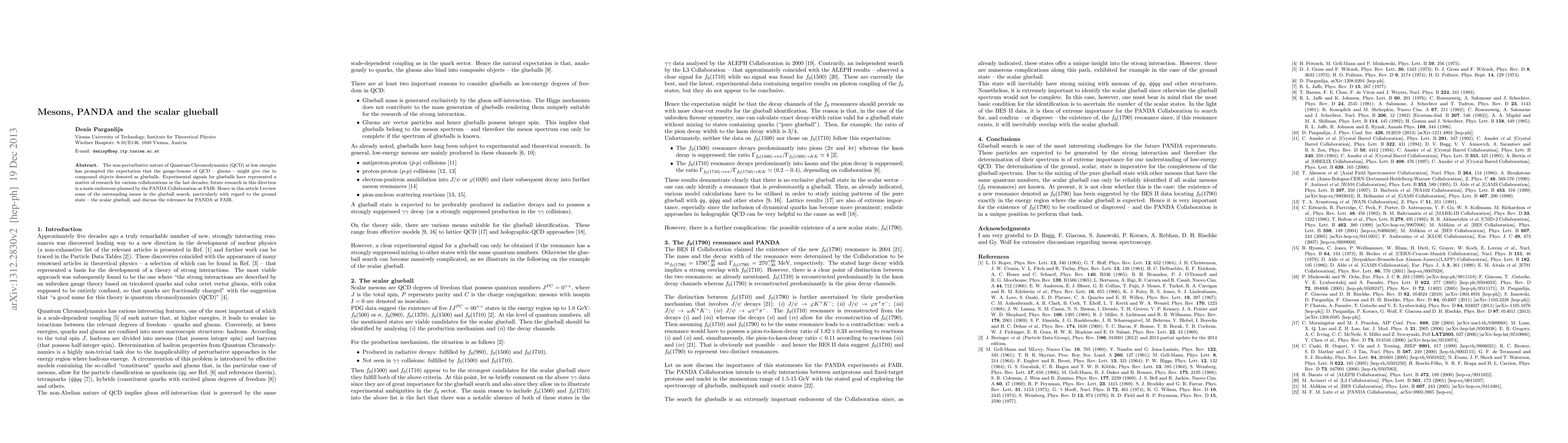This paper reviews the ongoing challenges in identifying glueballs, particularly the scalar glueball, in Quantum Chromodynamics, and discusses the PANDA Collaboration's role at FAIR in advancing this research. The focus is on the non-perturbative nature of QCD and the potential experimental signals for these elusive particles.