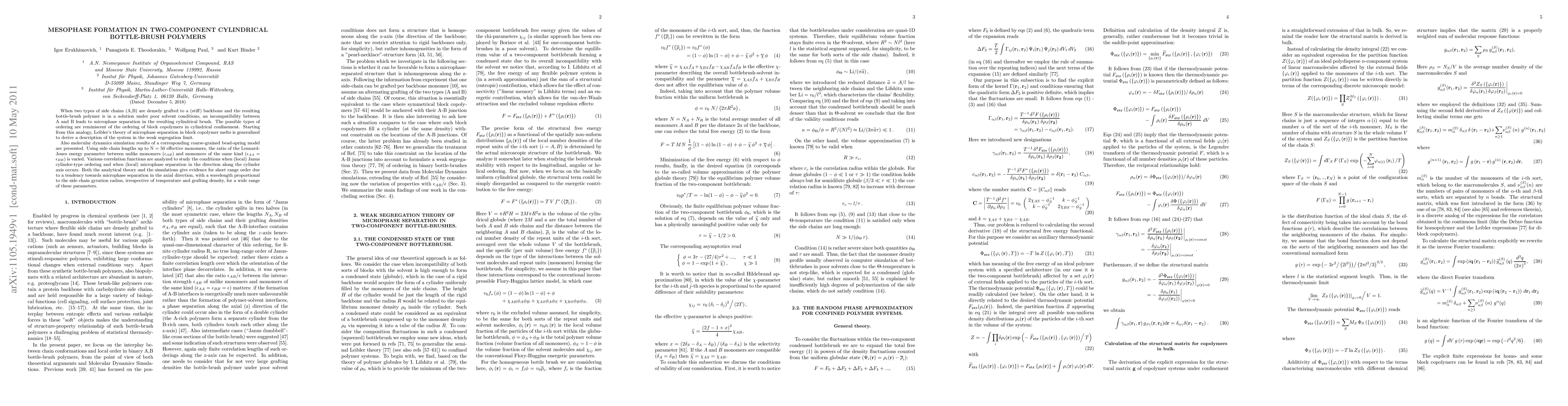 When two types of side chains (A,B) are densely grafted to a (stiff) backbone and the resulting bottle-brush polymer is in a solution under poor solvent conditions, an incompatibility between A and B leads to microphase separation in the resulting cylindrical brush. The possible types of ordering are reminiscent of the ordering of block copolymers in cylindrical confinement. Starting from this analogy, Leibler's theory of microphase separation in block copolymer melts is generalized to derive a description of the system in the weak segregation limit. Also molecular dynamics simulation results of a corresponding coarse-grained bead-spring model are presented. Using side chain lengths up to N = 50 effective monomers, the ratio of the Lennard-Jones energy parameter between unlike monomers $(\epsilon_{AB})$ and monomers of the same kind $(\epsilon _{AA} = \epsilon_{BB})$ is varied. Various correlation functions are analyzed to study the conditions when (local) Janus cylinder-type ordering and when (local) microphase separation in the direction along the cylinder axis occurs. Both the analytical theory and the simulations give evidence for short range order due to a tendency towards microphase separation in the axial direction, with a wavelength proportional to the side chain gyration radius, irrespective of temperature and grafting density, for a wide range of these parameters.