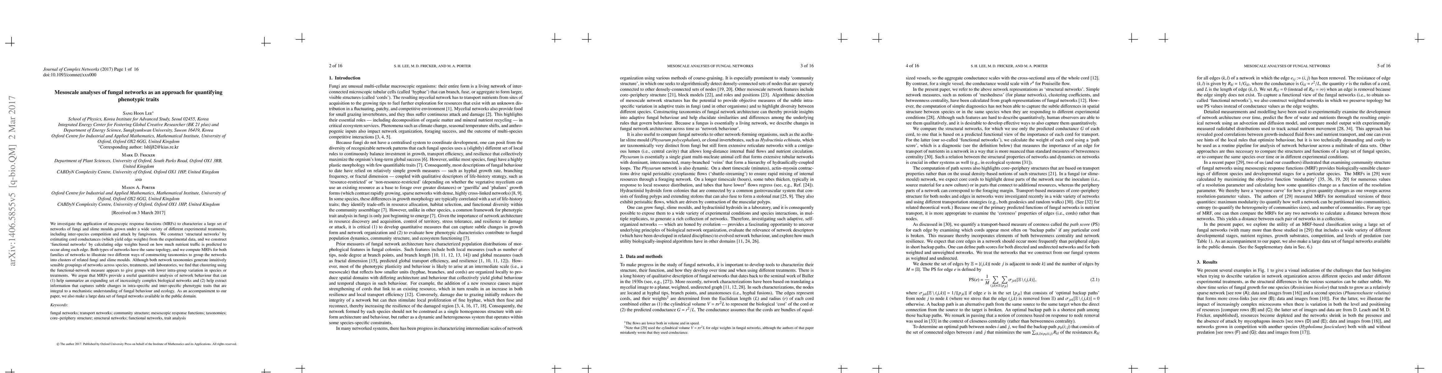 We investigate the application of mesoscopic response functions (MRFs) to characterize a large set of networks of fungi and slime moulds grown under a wide variety of different experimental treatments, including inter-species competition and attack by fungivores. We construct 'structural networks' by estimating cord conductances (which yield edge weights) from the experimental data, and we construct 'functional networks' by calculating edge weights based on how much nutrient traffic is predicted to occur along each edge. Both types of networks have the same topology, and we compute MRFs for both families of networks to illustrate two different ways of constructing taxonomies to group the networks into clusters of related fungi and slime moulds. Although both network taxonomies generate intuitively sensible groupings of networks across species, treatments and laboratories, we find that clustering using the functional-network measure appears to give groups with lower intra-group variation in species or treatments. We argue that MRFs provide a useful quantitative analysis of network behaviour that can (1) help summarize an expanding set of increasingly complex biological networks and (2) help extract information that captures subtle changes in intra- and inter-specific phenotypic traits that are integral to a mechanistic understanding of fungal behaviour and ecology. As an accompaniment to our paper, we also make a large data set of fungal networks available in the public domain.