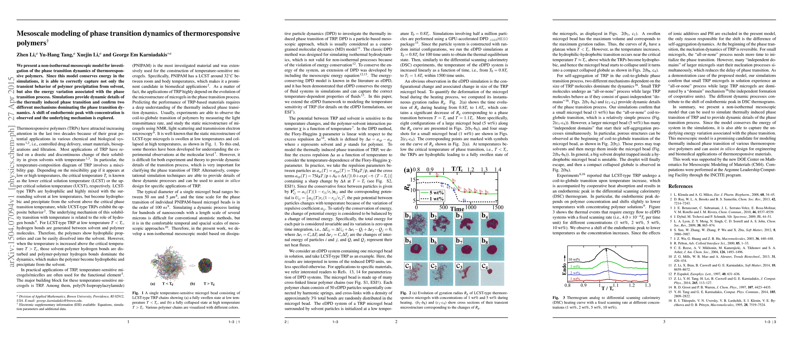 We present a non-isothermal mesoscopic model for investigation of the phase transition dynamics of thermoresponsive polymers. Since this model conserves energy in the simulations, it is able to correctly capture not only the transient behavior of polymer precipitation from solvent, but also the energy variation associated with the phase transition process. Simulations provide dynamic details of the thermally induced phase transition and confirm two different mechanisms dominating the phase transition dynamics. A shift of endothermic peak with concentration is observed and the underlying mechanism is explored.