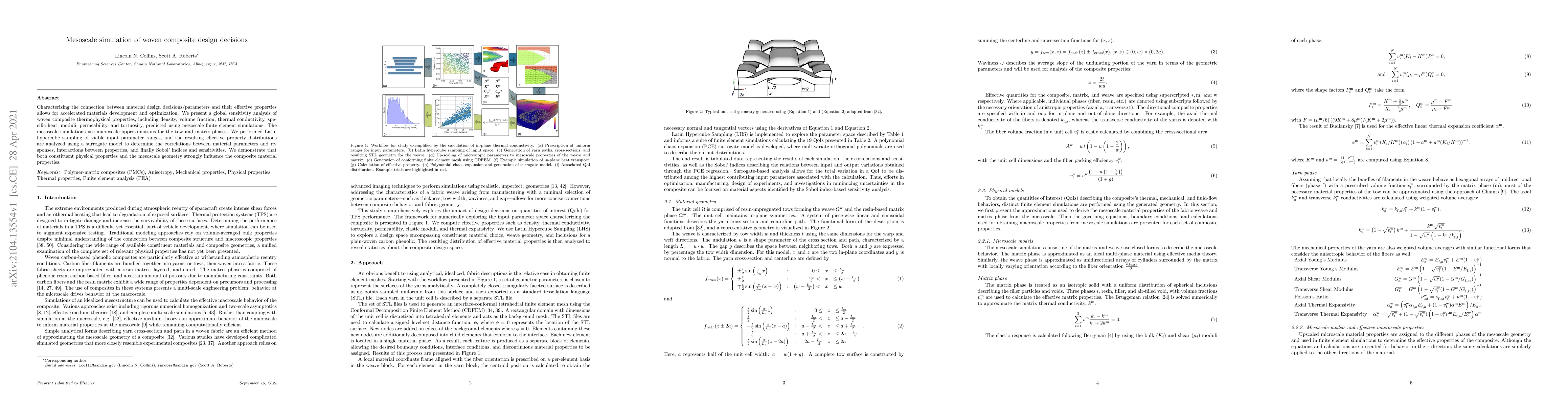 This paper conducts a global sensitivity analysis on woven composite thermophysical properties using mesoscale simulations, revealing strong correlations between material design parameters and effective properties. The study identifies key interactions and influences of constituent properties and mesoscale geometry on composite material characteristics.