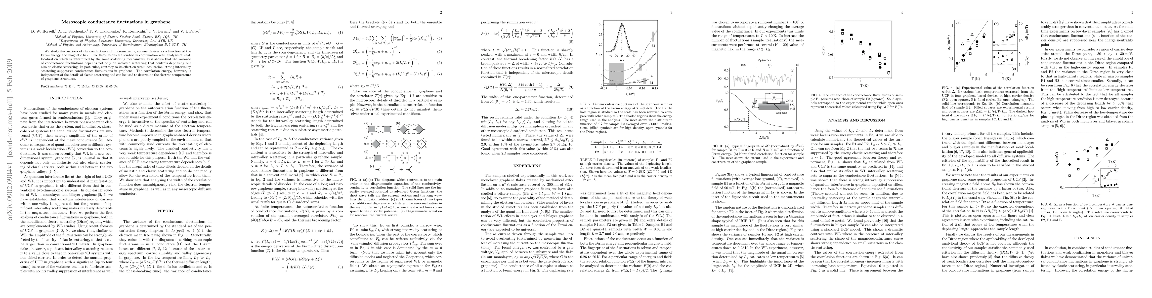 This paper investigates the conductance fluctuations in graphene devices, revealing that variance depends on both inelastic and elastic scattering. Contrary to weak localization, strong intervalley scattering reduces conductance fluctuations, while correlation energy remains independent of elastic scattering and can determine electron temperature.