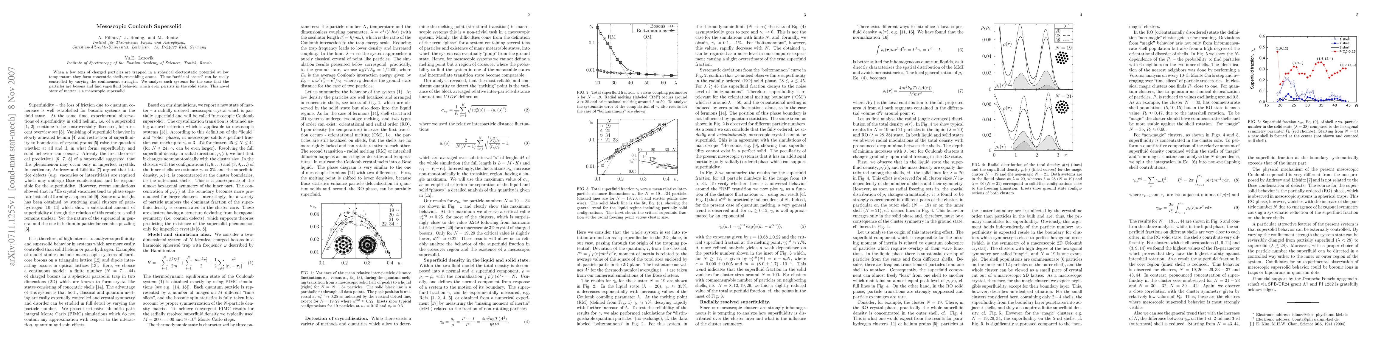 When a few tens of charged particles are trapped in a spherical electrostatic potential at low temperature they form concentric shells resembling atoms. These ``artificial atoms'' can be easily controlled by varying the confinement strength. We analyze such systems for the case that the particles are bosons and find superfluid behavior which even persists in the solid state. This novel state of matter is a mesoscopic supersolid.