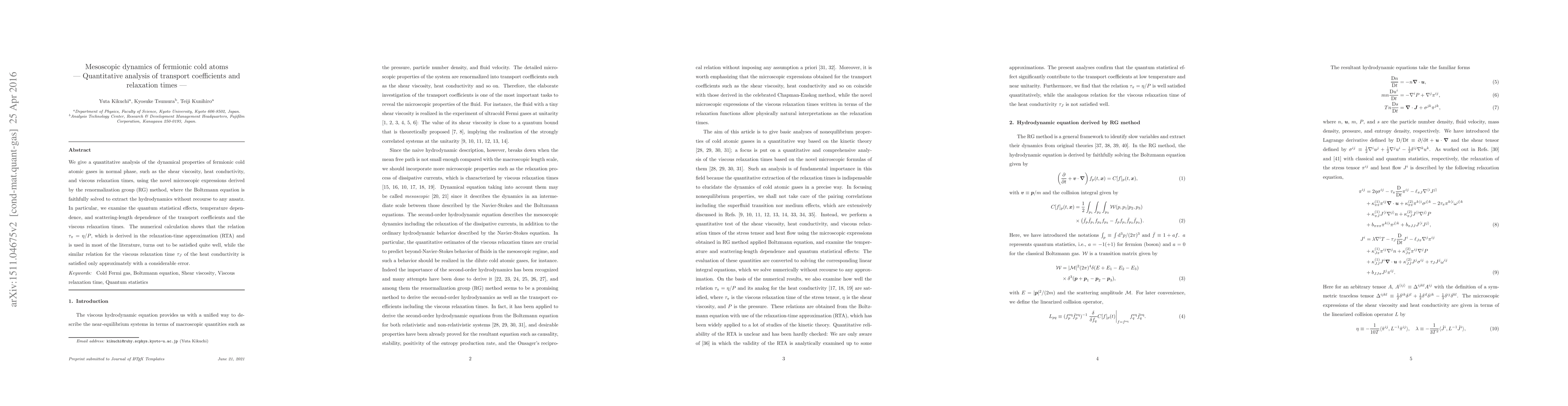 We give a quantitative analysis of the dynamical properties of fermionic cold atomic gases in normal phase, such as the shear viscosity, heat conductivity, and viscous relaxation times, using the novel microscopic expressions derived by the renormalization group (RG) method, where the Boltzmann equation is faithfully solved to extract the hydrodynamics without recourse to any ansatz. In particular, we examine the quantum statistical effects, temperature dependence, and scattering-length dependence of the transport coefficients and the viscous relaxation times. The numerical calculation shows that the relation $\tau_\pi=\eta/P$, which is derived in the relaxation-time approximation (RTA) and is used in most of the literature, turns out to be satisfied quite well, while the similar relation for the viscous relaxation time $\tau_J$ of the heat conductivity is satisfied only approximately with a considerable error.