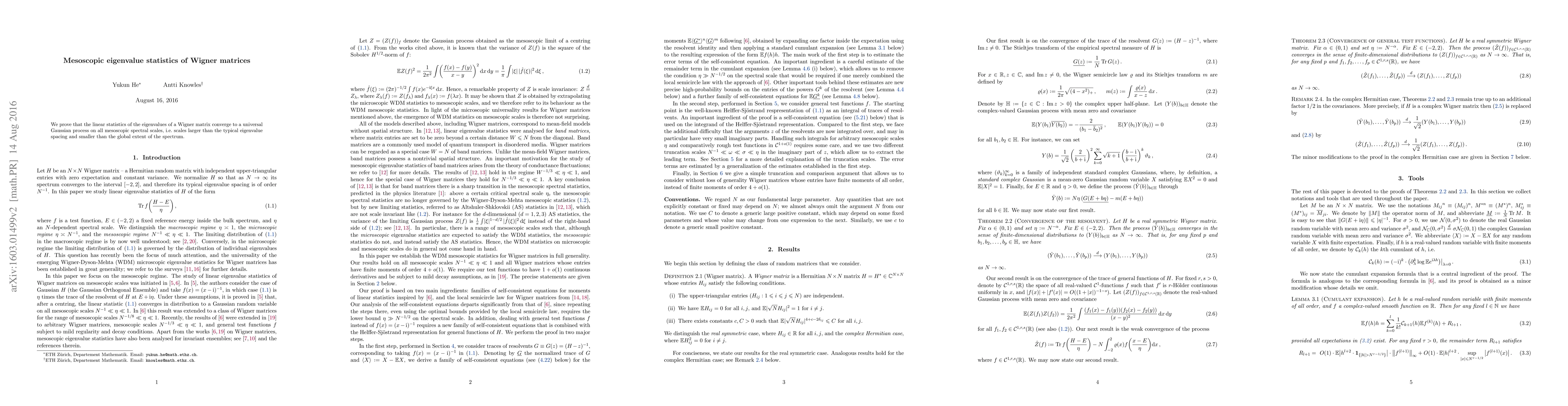 Summary: This paper demonstrates that the linear statistics of eigenvalues in Wigner matrices converge to a universal Gaussian process across mesoscopic scales, bridging scales larger than typical eigenvalue spacing and smaller than the spectrum's global extent.