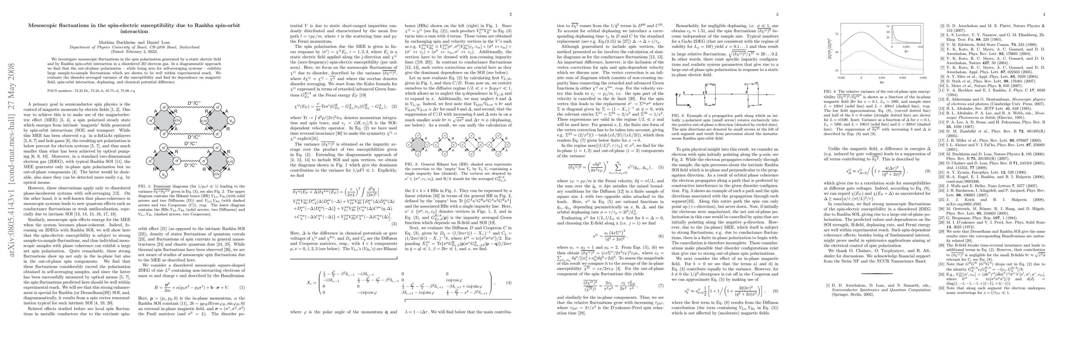 This paper examines mesoscopic fluctuations in spin polarization in a disordered 2D electron gas due to a static electric field and Rashba spin-orbit interaction. The study reveals significant sample-to-sample variations in out-of-plane polarization, which are theoretically feasible to detect experimentally.