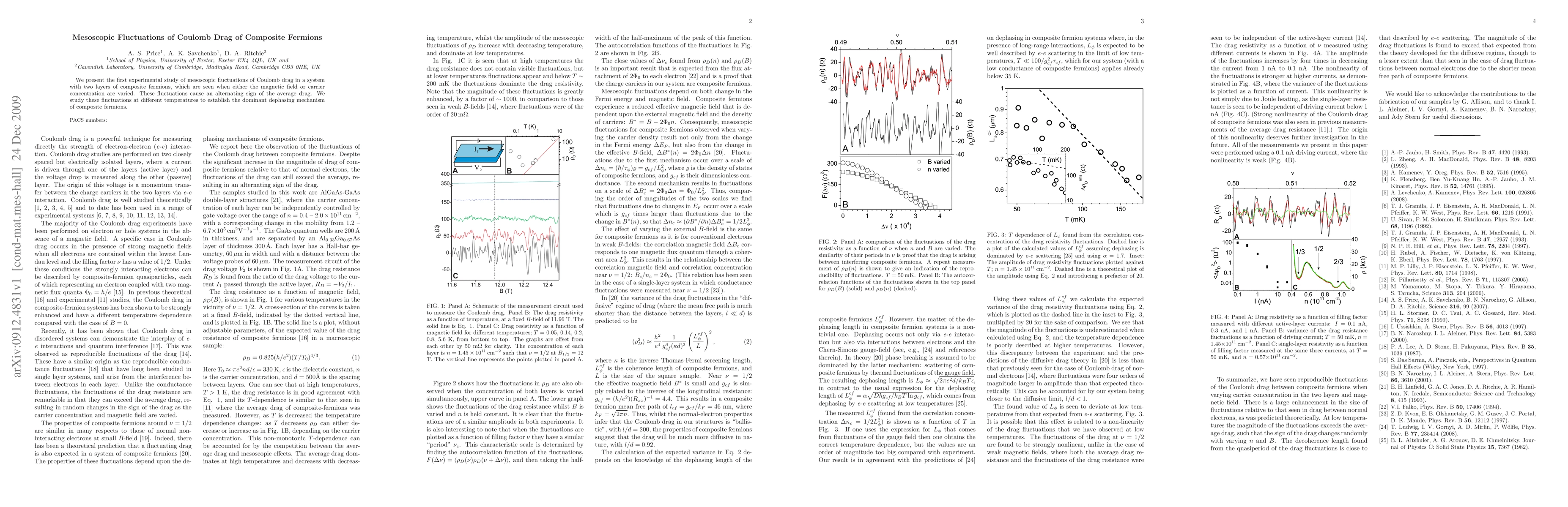 This paper investigates mesoscopic fluctuations in Coulomb drag between two layers of composite fermions under varying magnetic fields and carrier concentrations, revealing alternating drag signs. The study identifies the dominant dephasing mechanism at different temperatures.