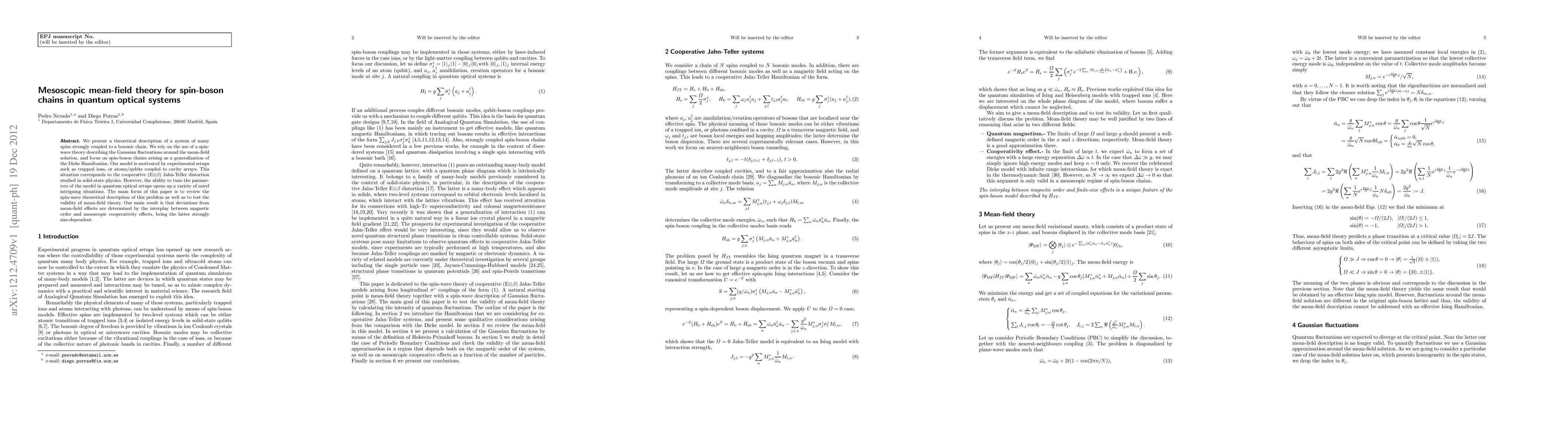 We present a theoretical description of a system of many spins strongly coupled to a bosonic chain. We rely on the use of a spin-wave theory describing the Gaussian fluctuations around the mean-field solution, and focus on spin-boson chains arising as a generalization of the Dicke Hamiltonian. Our model is motivated by experimental setups such as trapped ions, or atoms/qubits coupled to cavity arrays. This situation corresponds to the cooperative (E$\otimes$$\beta$) Jahn-Teller distortion studied in solid-state physics. However, the ability to tune the parameters of the model in quantum optical setups opens up a variety of novel intriguing situations. The main focus of this paper is to review the spin-wave theoretical description of this problem as well as to test the validity of mean-field theory. Our main result is that deviations from mean-field effects are determined by the interplay between magnetic order and mesoscopic cooperativity effects, being the latter strongly size-dependent.
