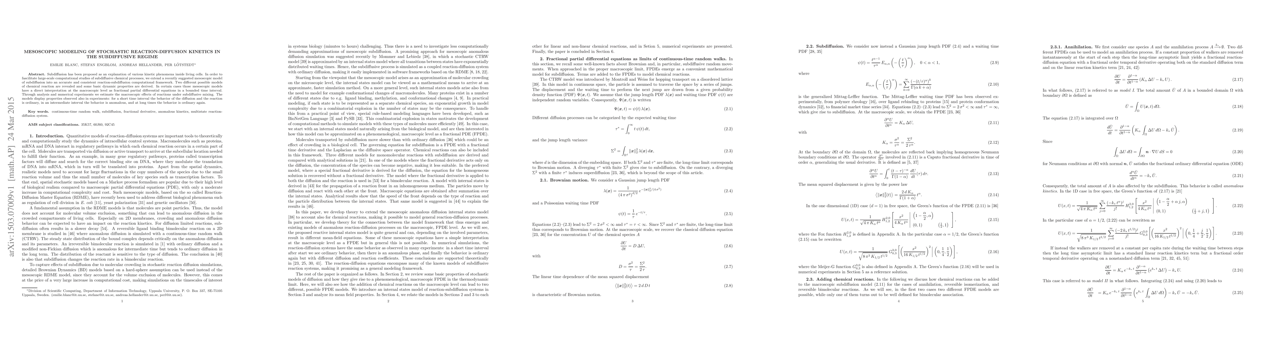 Researchers developed a new mesoscopic model for subdiffusive reaction-diffusion kinetics that accurately predicts macroscopic effects of reactions under subdiffusive mixing, revealing behaviors consistent with experiments.