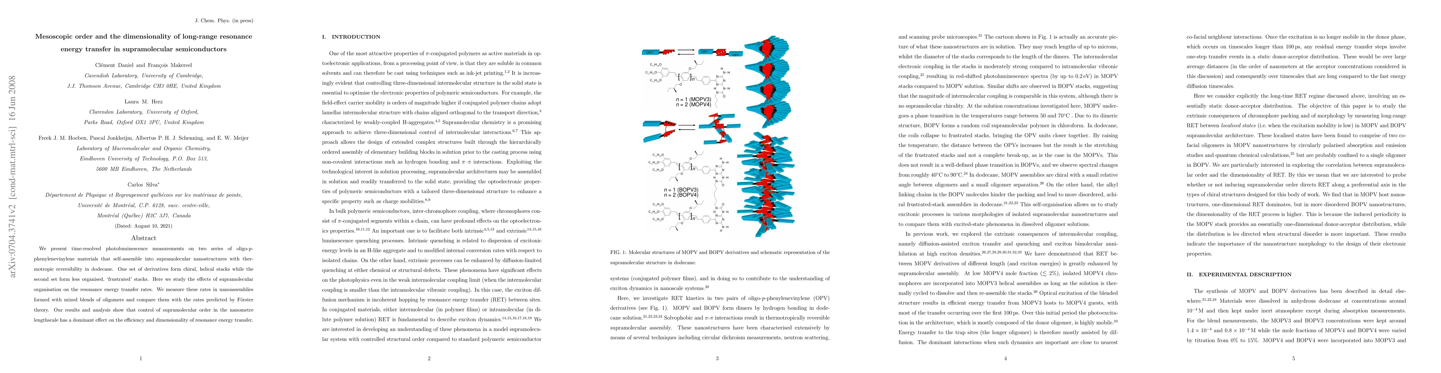 The study presents a detailed analysis of resonance energy transfer (RET) in supramolecular semiconductors, demonstrating the impact of supramolecular organization on RET rates and efficiency.