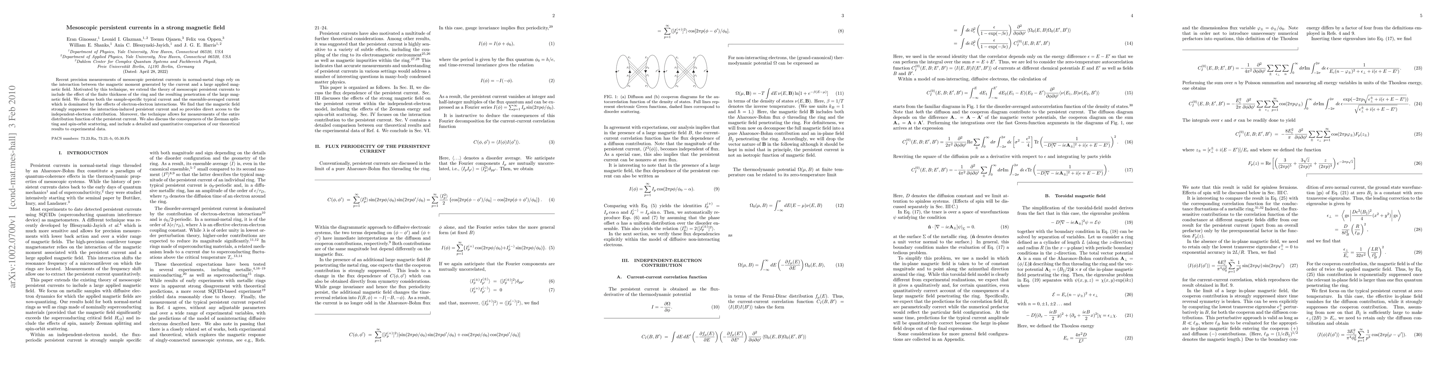 This research extends the theory of mesoscopic persistent currents in normal-metal rings under strong magnetic fields, considering the finite ring thickness and electron-electron interactions. It finds that the magnetic field suppresses interaction-induced currents, offering insight into independent-electron contributions and enabling measurements of the entire persistent current distribution.