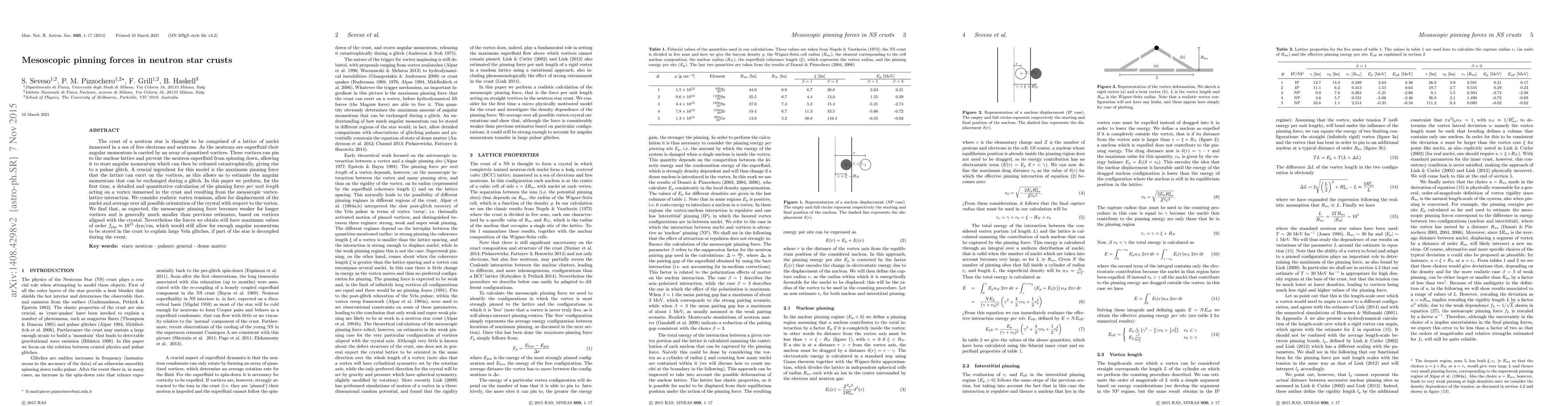 This paper quantitatively calculates the mesoscopic pinning force per unit length on vortices in neutron star crusts, revealing weaker forces than previous estimates but still sufficient to potentially explain large pulsar glitches by storing angular momentum. The calculated maximum pinning force is approximately \( f_{\rm{pin}} \approx 10^{15} \) dyn/cm.