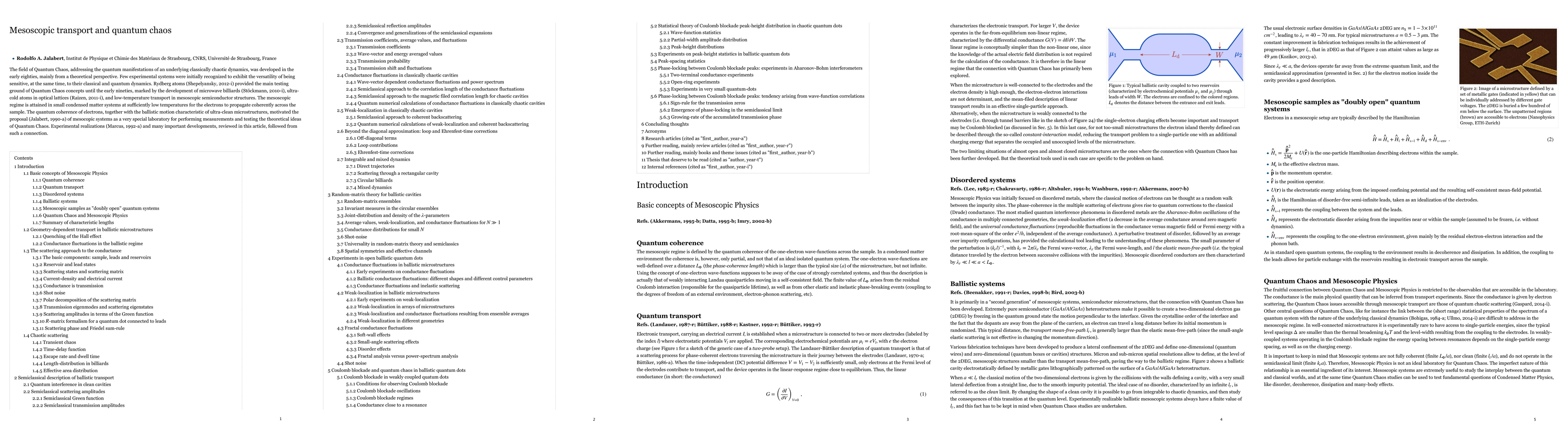 The field of Quantum Chaos, addressing the quantum manifestations of an underlying classically chaotic dynamics, was developed in the early eighties, mainly from a theoretical perspective. Few experimental systems were initially recognized to exhibit the versatility of being sensitive, at the same time, to their classical and quantum dynamics. Rydberg atoms provided the main testing ground of Quantum Chaos concepts until the early nineties, marked by the development of microwave billiards, ultra-cold atoms in optical lattices, and low-temperature transport in mesoscopic semiconductor structures. The mesoscopic regime is attained in small condensed matter systems at sufficiently low temperatures for the electrons to propagate coherently across the sample. The quantum coherence of electrons, together with the ballistic motion characteristic of ultra-clean microstructures, motivated the proposal of mesocopic systems as a very special laboratory for performing measurements and testing the theoretical ideas of Quantum Chaos. Experimental realizations and many important developments, reviewed in this article, followed from such a connection.