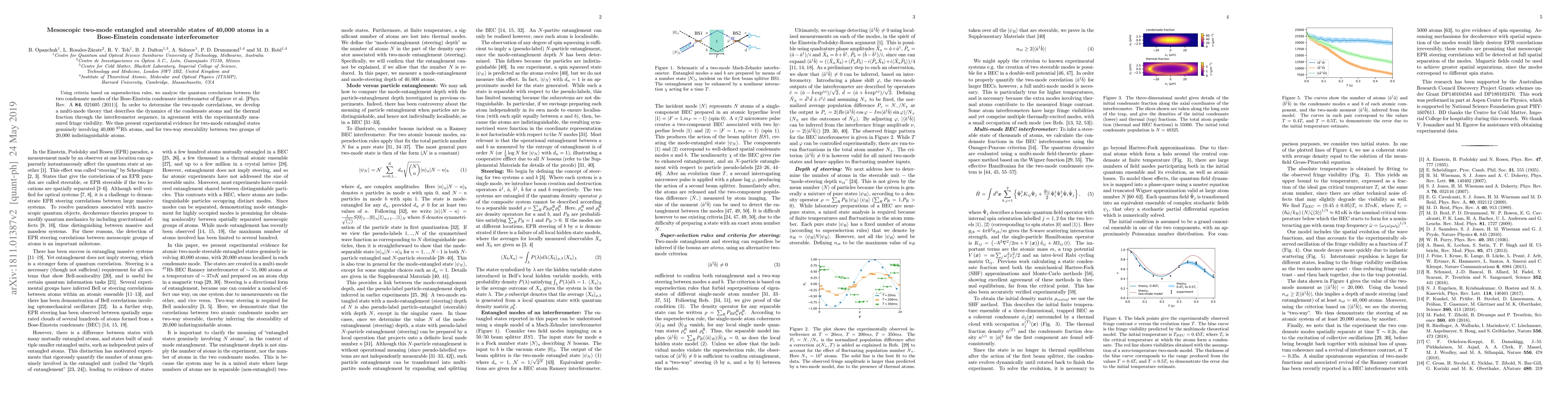 Researchers demonstrate two-mode entangled states in a Bose-Einstein condensate interferometer involving 40,000 atoms, and show two-way steerability between groups of indistinguishable atoms.