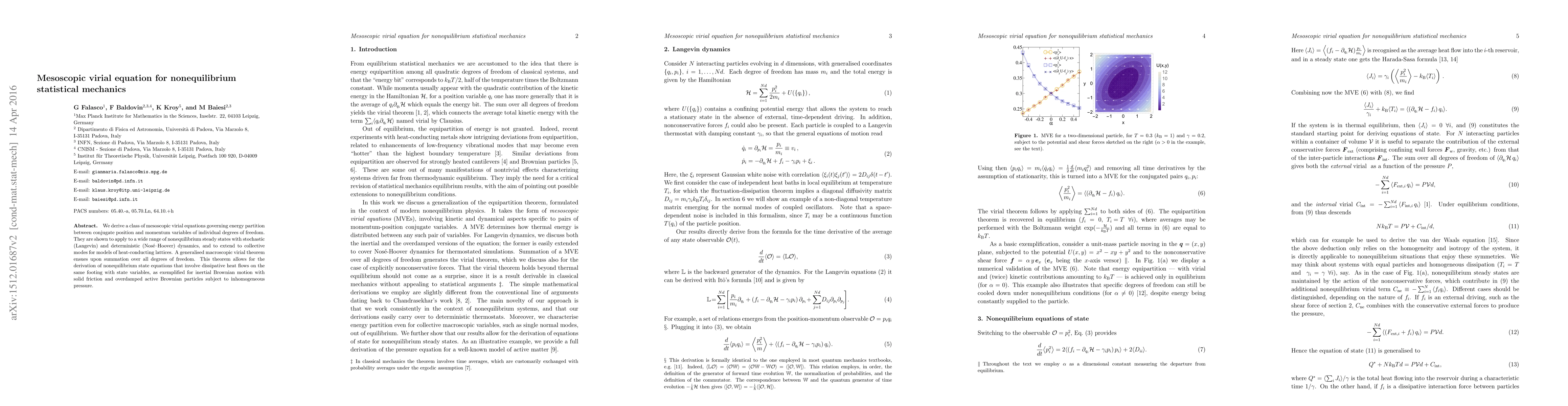 Researchers derived mesoscopic virial equations for nonequilibrium statistical mechanics, allowing for energy partition between position and momentum variables in various systems. The equations enable the derivation of state equations that incorporate dissipative heat flows alongside state variables.