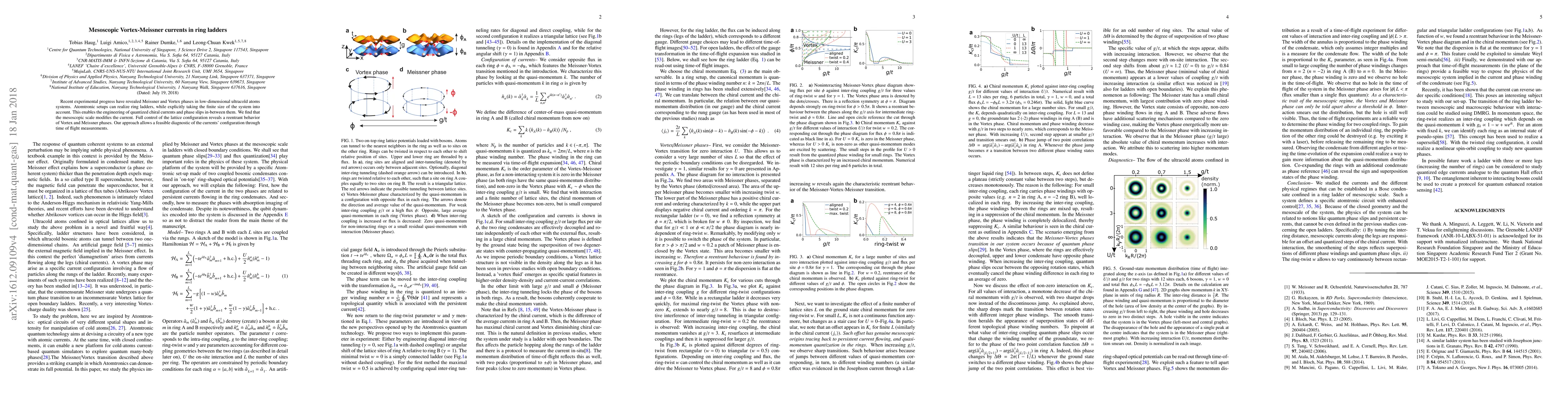 This paper explores the behavior of vortex and Meissner phases in ring ladders formed by ultracold atoms, revealing how mesoscopic scale influences quantized chiral currents and phase slips. The study demonstrates reentrant phase behavior and proposes time of flight measurements for current configuration diagnostics.