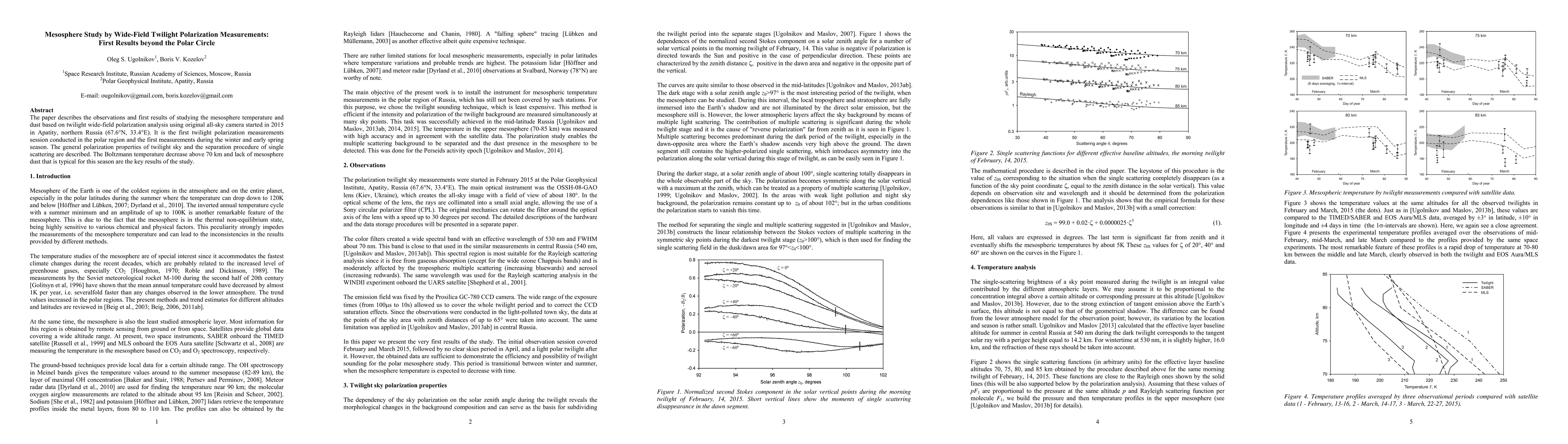 This study utilizes twilight wide-field polarization measurements from an all-sky camera in Apatity, Russia, to investigate mesosphere temperature and dust. The findings reveal a temperature decrease above 70 km and an absence of typical mesosphere dust during winter and early spring.
