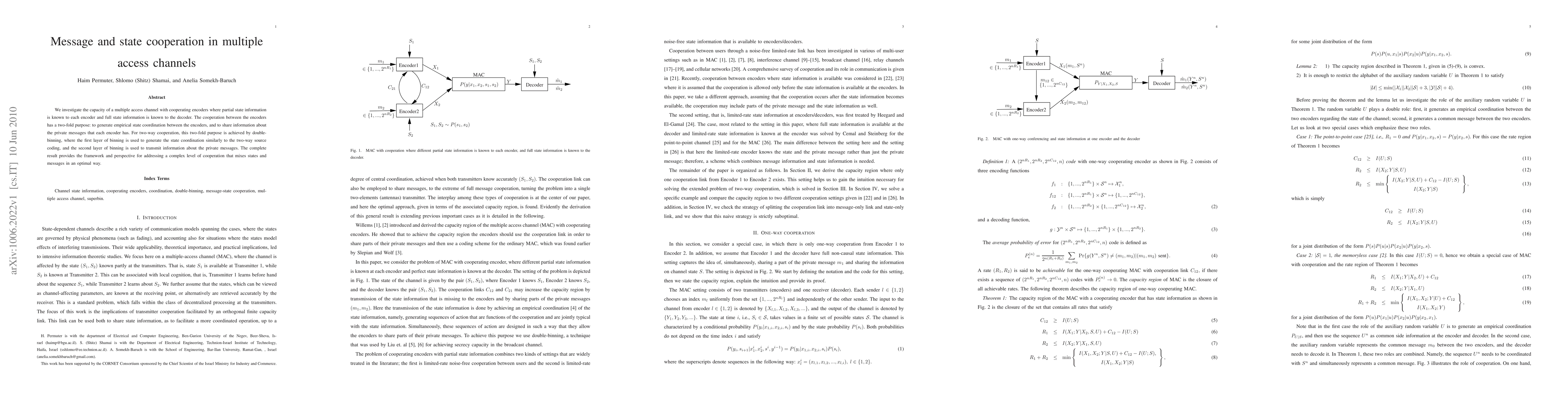 This paper explores the capacity of multiple access channels with encoders that share partial state information, aiming to optimize both state coordination and message sharing through a double-binning technique. The study provides a framework for understanding complex cooperation that optimally integrates both state and message information.