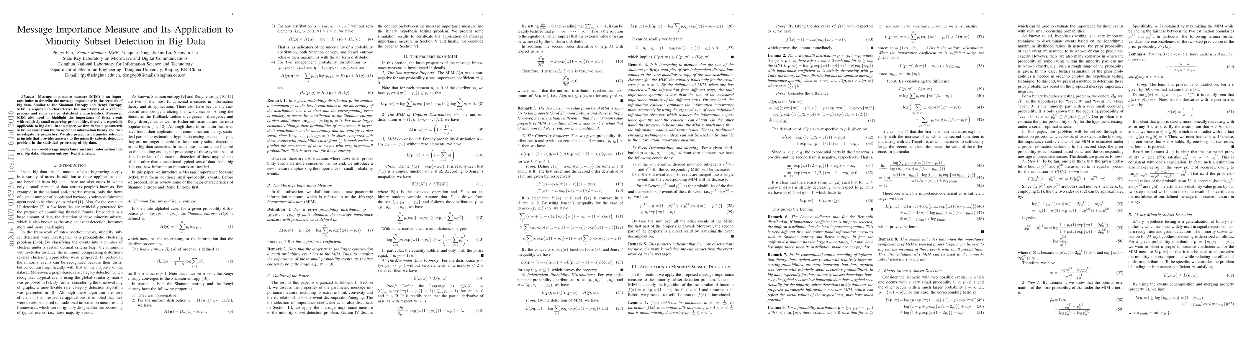 This paper introduces a Message Importance Measure (MIM) to quantify the significance of messages in big data, emphasizing rare events. It defines a parametric MIM based on information theory and explores its properties, ultimately applying it to detect minority subsets in big data analysis.