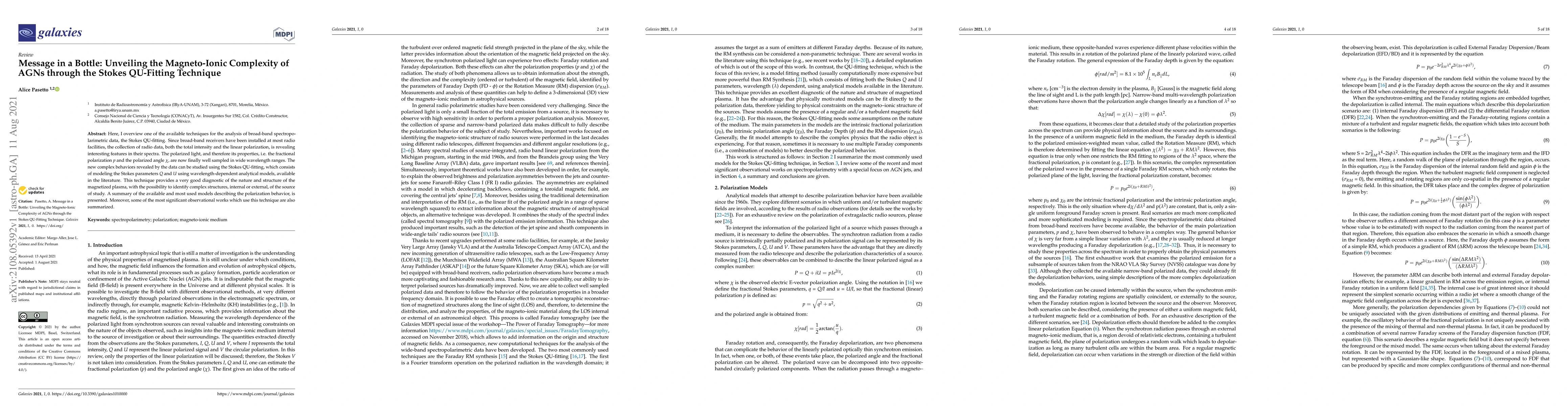 Here, I overview one of the available techniques for the analysis of broad-band spectropolarimetric data, the Stokes QU-fitting. Since broad-band receivers have been installed at most radio facilities, the collection of radio data, both the total intensity and the linear polarization, is revealing interesting features in their spectra. The polarized light, and therefore its properties, i.e. the fractional polarization and the polarized angle, are now finally well sampled in wide wavelength ranges. The new complex behaviors revealed by the data can be studied using the Stokes QU-fitting, which consists of modeling the Stokes parameters Q and U using wavelength-dependent analytical models, available in the literature. This technique provides a very good diagnostic of the nature and structure of the magnetized plasma, with the possibility to identify complex structures, internal or external, of the source of study. A summary of the available and most used models describing the polarization behavior, is presented. Moreover, some of the most significant observational works which use this technique are also summarized.