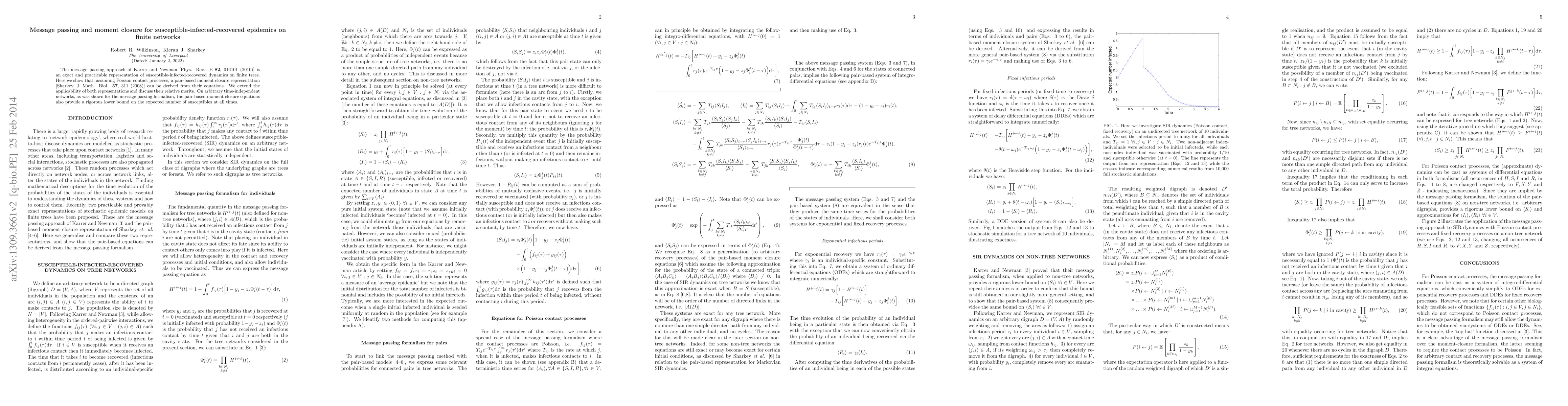 The message passing approach of Karrer and Newman [Phys. Rev. E 82, 016101 (2010)] is an exact and practicable representation of susceptible-infected-recovered dynamics on finite trees. Here we show that, assuming Poisson contact processes, a pair-based moment closure representation [Sharkey, J. Math. Biol. 57, 311 (2008)] can be derived from their equations. We extend the applicability of both representations and discuss their relative merits. On arbitrary time-independent networks, as was shown for the message passing formalism, the pair-based moment closure equations also provide a rigorous lower bound on the expected number of susceptibles at all times.