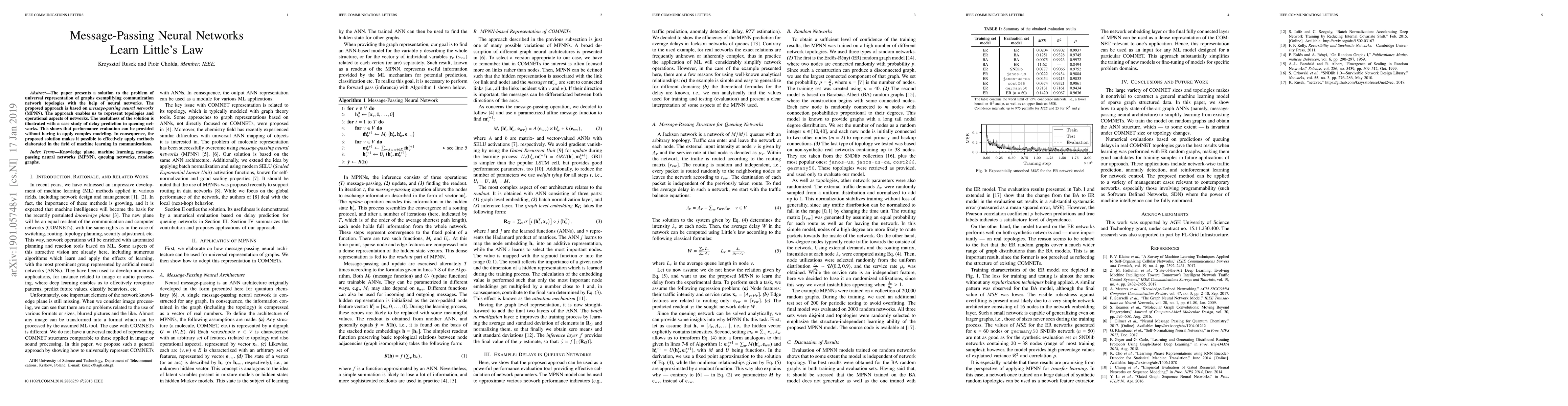 Message-Passing Neural Networks can learn to represent and predict performance in complex communication networks using Little's Law without needing complex modeling, enabling the effective application of machine learning methods.