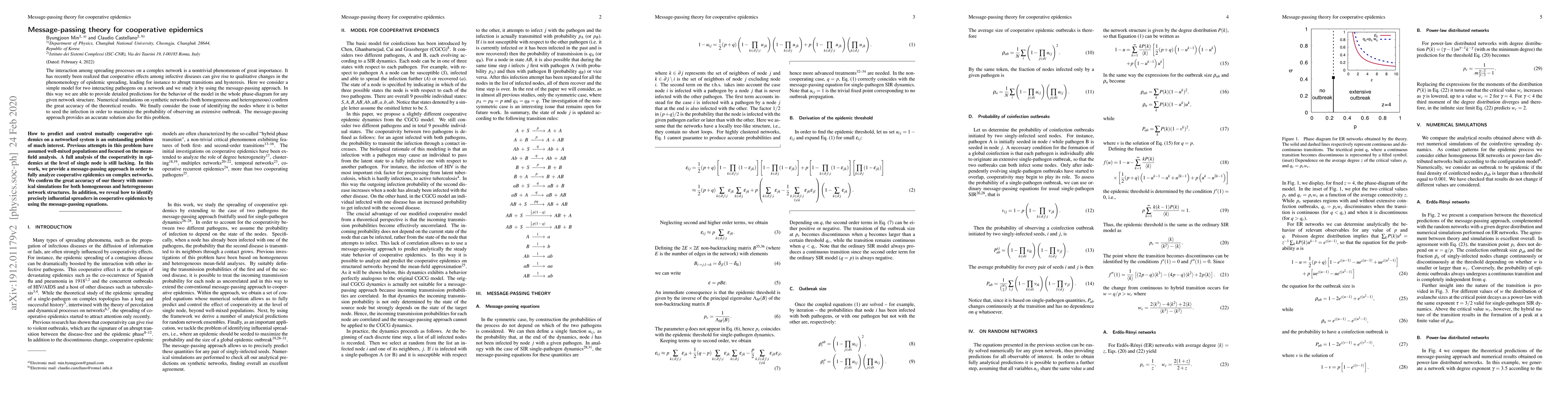 Researchers developed a message-passing theory to study cooperative epidemics on complex networks, providing detailed predictions for outbreak behavior and accurate solutions for identifying optimal seeding nodes.