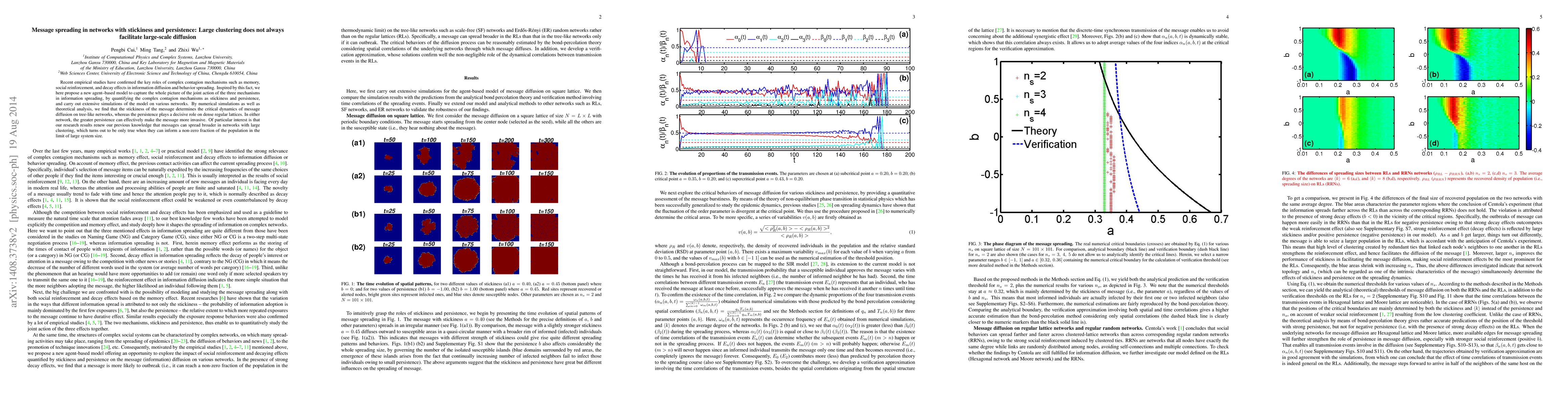 Recent empirical studies have confirmed the key roles of complex contagion mechanisms such as memory, social reinforcement, and decay effects in information diffusion and behaviour spreading. Inspired by this fact, we here propose a new agent--based model to capture the whole picture of the joint action of the three mechanisms in information spreading, by quantifying the complex contagion mechanisms as stickiness and persistence, and carry out extensive simulations of the model on various networks. By numerical simulations as well as theoretical analysis, we find that the stickiness of the message determines the critical dynamics of message diffusion on tree-like networks, whereas the persistence plays a decisive role on dense regular lattices. In either network, the greater persistence can effectively make the message more invasive. Of particular interest is that our research results renew our previous knowledge that messages can spread broader in networks with large clustering, which turns out to be only true when they can inform a non-zero fraction of the population in the limit of large system size.