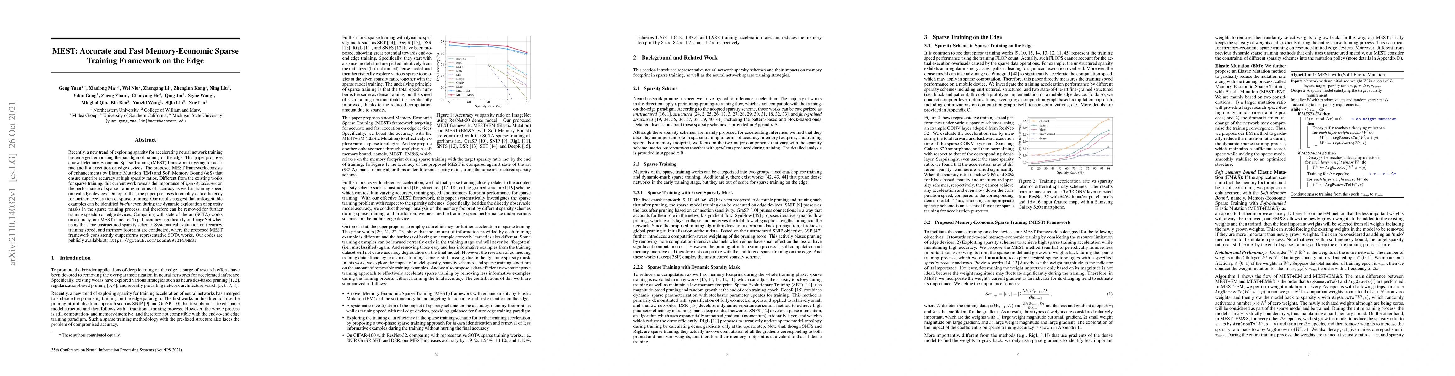 The MEST framework introduces an innovative approach for sparse training on edge devices, utilizing Elastic Mutation and Soft Memory Bound to achieve high accuracy and fast training speeds. It identifies and removes unnecessary training examples dynamically, significantly improving performance compared to state-of-the-art methods.