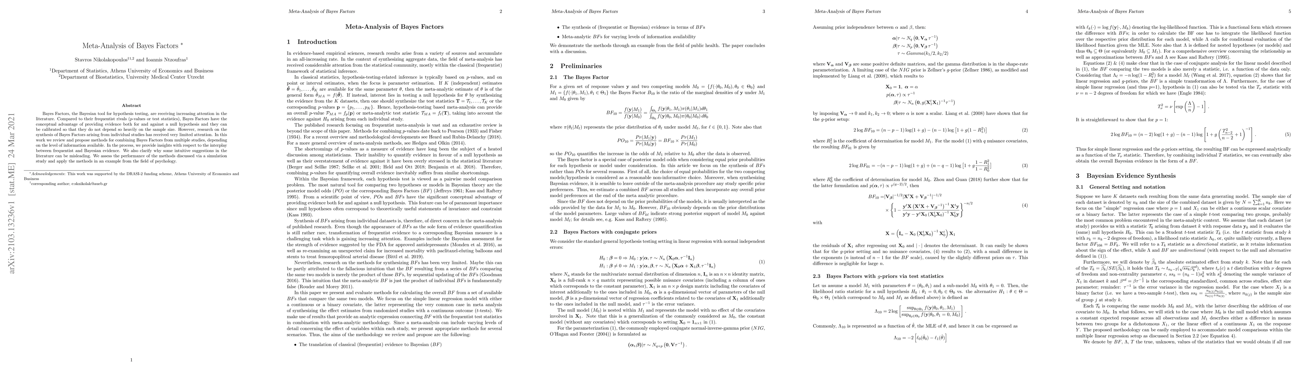 This paper reviews and proposes methods for synthesizing Bayes Factors from multiple studies, highlighting the interplay between frequentist and Bayesian evidence. It assesses the proposed methods through simulations and applies them to a psychology example, clarifying common misconceptions in the literature.