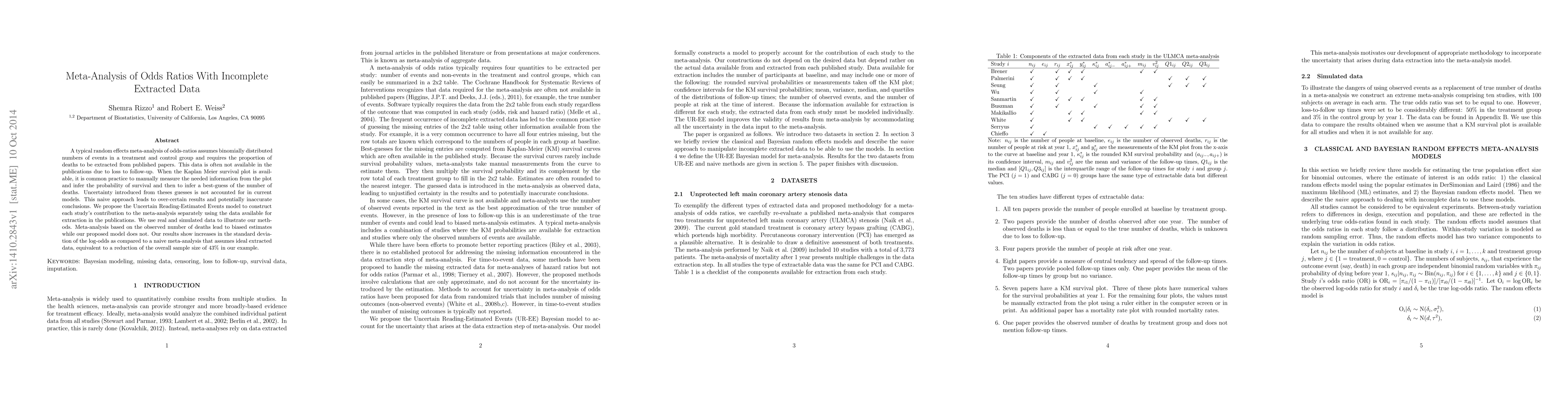 This paper proposes a new model, the Uncertain Reading-Estimated Events model, to address the issue of incomplete data in meta-analyses of odds ratios, showing that traditional methods lead to biased and over-certain results. The new model improves accuracy by accounting for uncertainty in inferred data.