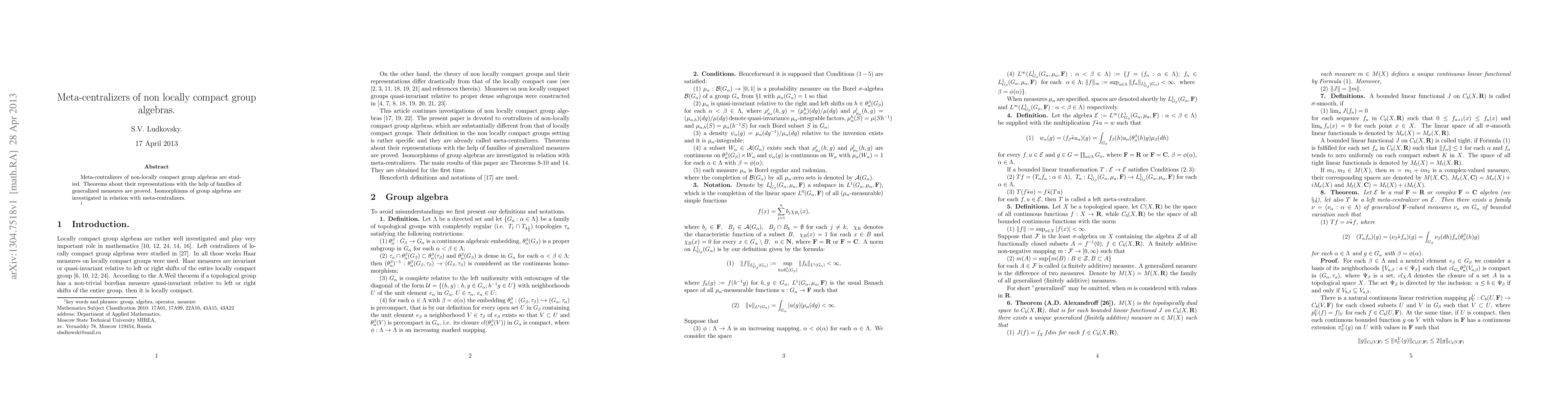 Meta-centralizers of non-locally compact group algebras are studied. Theorems about their representations with the help of families of generalized measures are proved. Isomorphisms of group algebras are investigated in relation with meta-centralizers.
