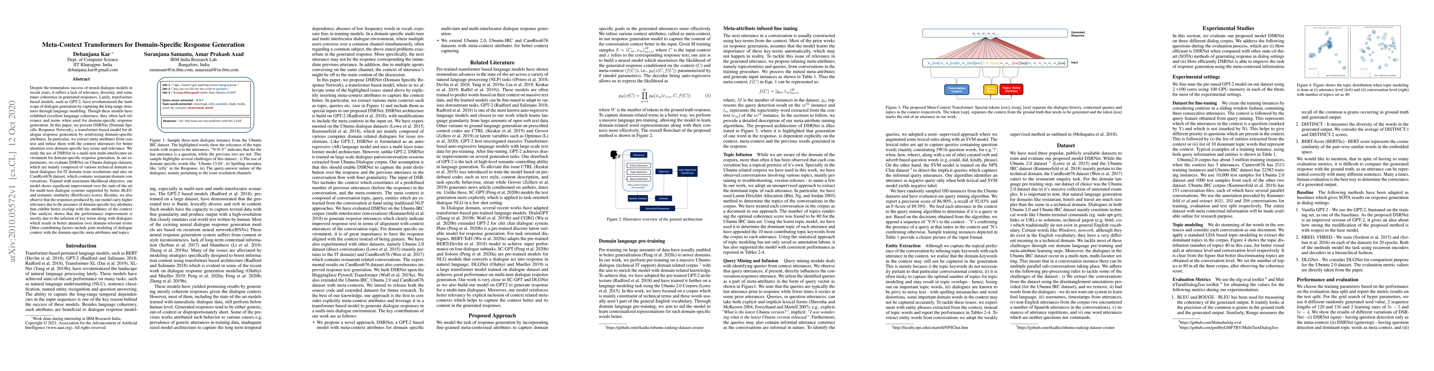 This paper introduces DSRNet, a transformer-based model that enhances dialogue response generation by incorporating domain-specific meta attributes. The model shows significant improvements in relevance and coherence for multi-turn dialogues in technical and restaurant domains, outperforming state-of-the-art methods based on BLEU and BertScore scores.