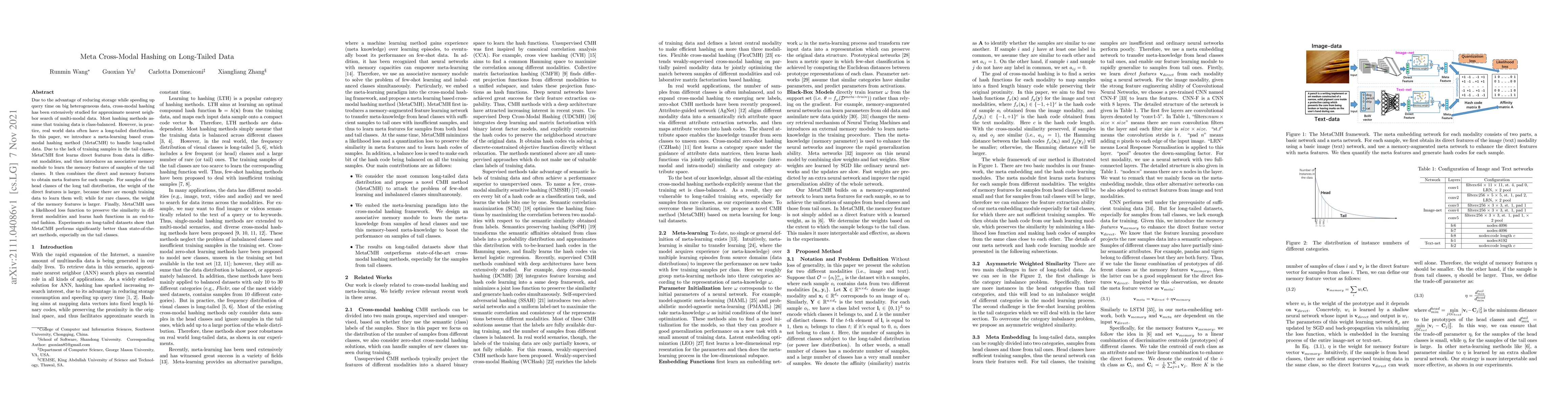 A new cross-modal hashing method called MetaCMH is introduced to handle long-tailed data, achieving better performance on tail classes than state-of-the-art methods.
