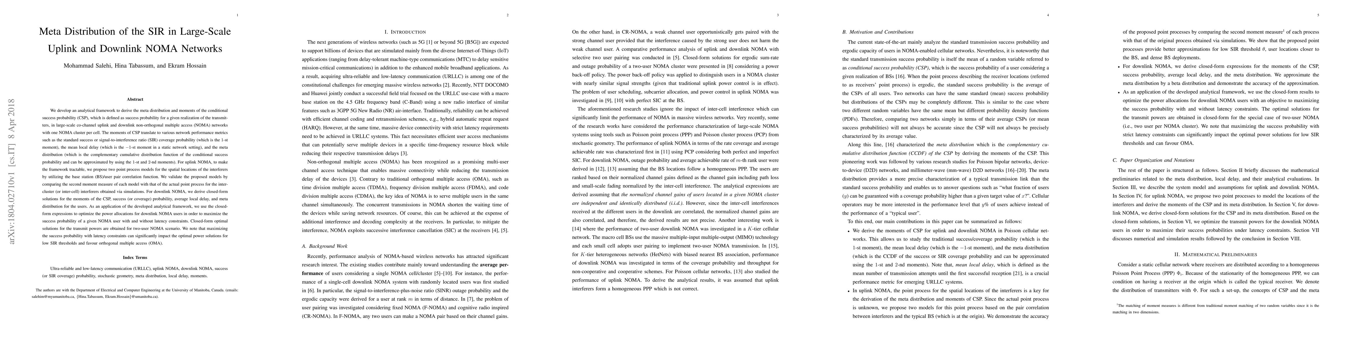 This paper develops an analytical framework to derive the meta distribution and moments of the conditional success probability in large-scale NOMA networks. It proposes point process models for uplink NOMA and closed-form solutions for downlink NOMA, optimizing power allocations to maximize success probability under latency constraints.