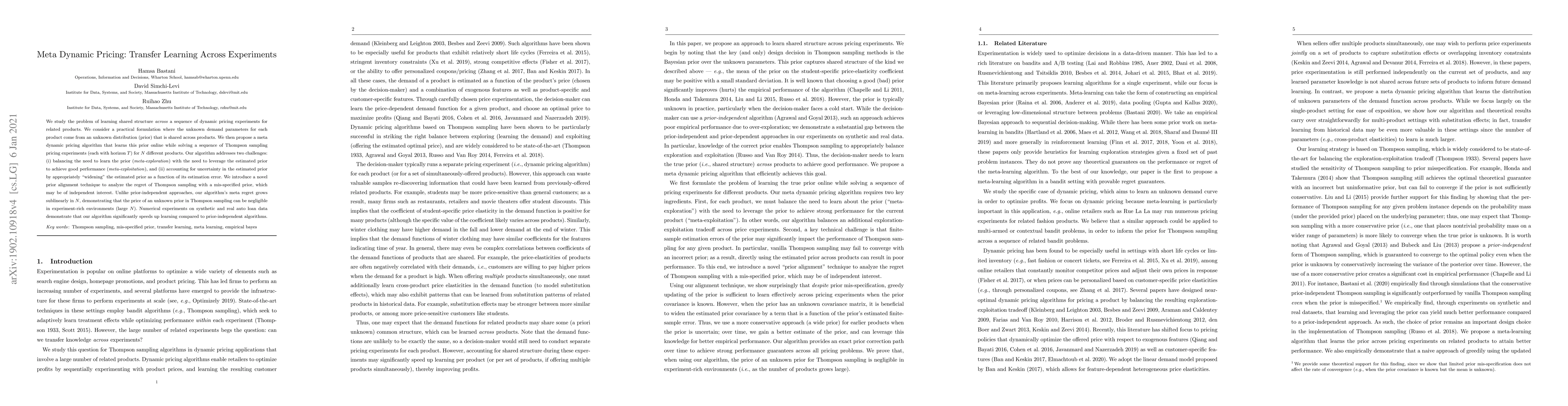 Researchers developed a meta dynamic pricing algorithm that leverages shared demand structure across multiple products to speed up learning, achieving sublinear growth in regret with large product datasets.