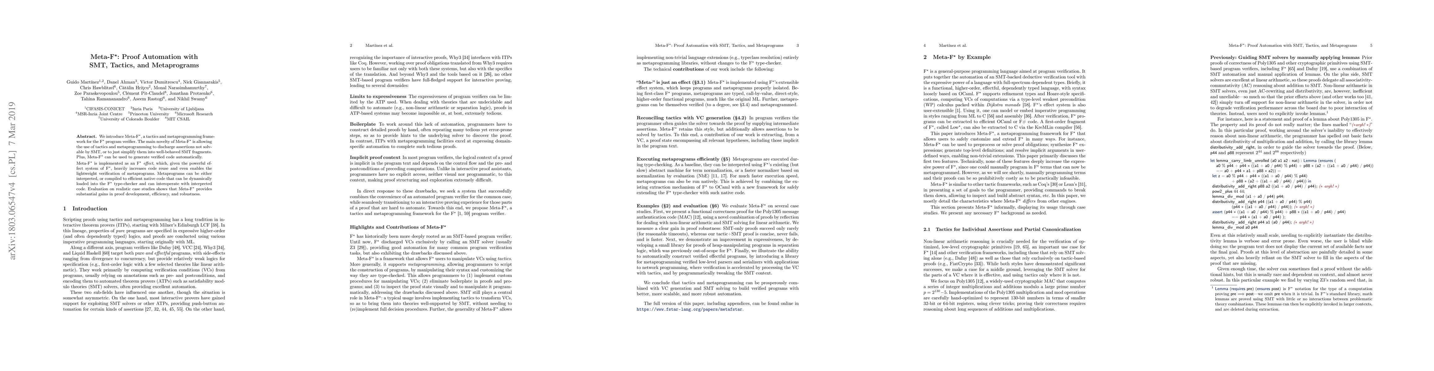 Meta-F* introduces a novel framework that combines SMT automation with hand-written tactics, enabling the writing of proofs that were previously impractical in F* and other SMT-based program verifiers.
